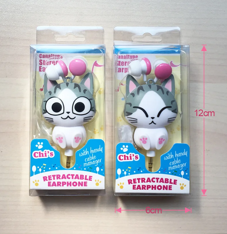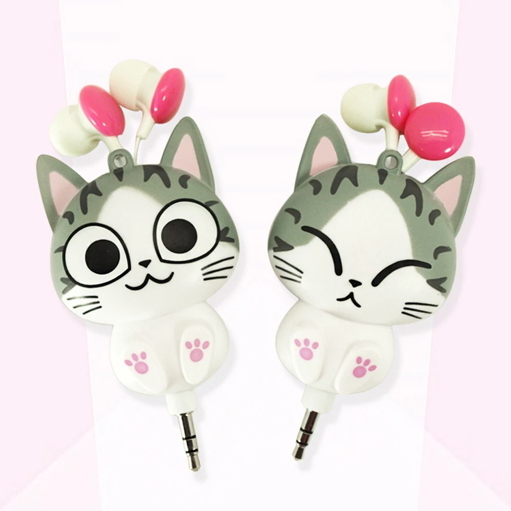 Наушники-вкладыши с изображением кошки, панды, сыра, выдвижная Автоматическая гарнитура для Iphone, Android, подарки для девочек