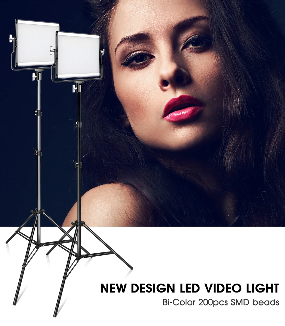 Набор из 2 светодиодов Travor для видеосъемки, двухцветный, с регулируемой яркостью, с U-образным кронштейном, 3200-5600K, CRI96 и сумкой для студийной фотографии, видеосъемки