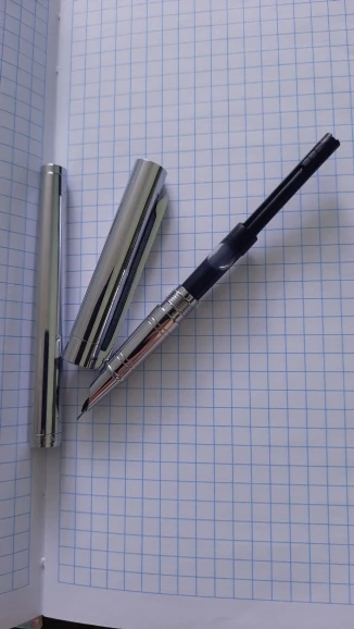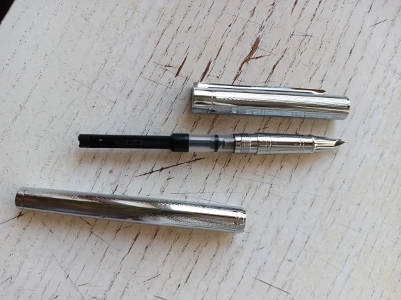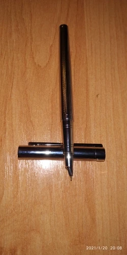 Ручка хорошая, достаточно тяжёлый колпачек, пишет не жирно, подходит обычный картридж от паркера. Доставка быстрая за 3 недели, отправили в день заказа. Рекомендую продавца