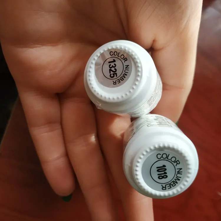 Интересный цвет .Но с одного слоя не перекроет ,т.к. полупрозрачный. Не знаю как другие оттенки. В два слоя отлично .Баночка полная, что радует. Консистенция понравилась -средней густоты, приятно работать. Доставка 2 недели. Спасибо продавцу.