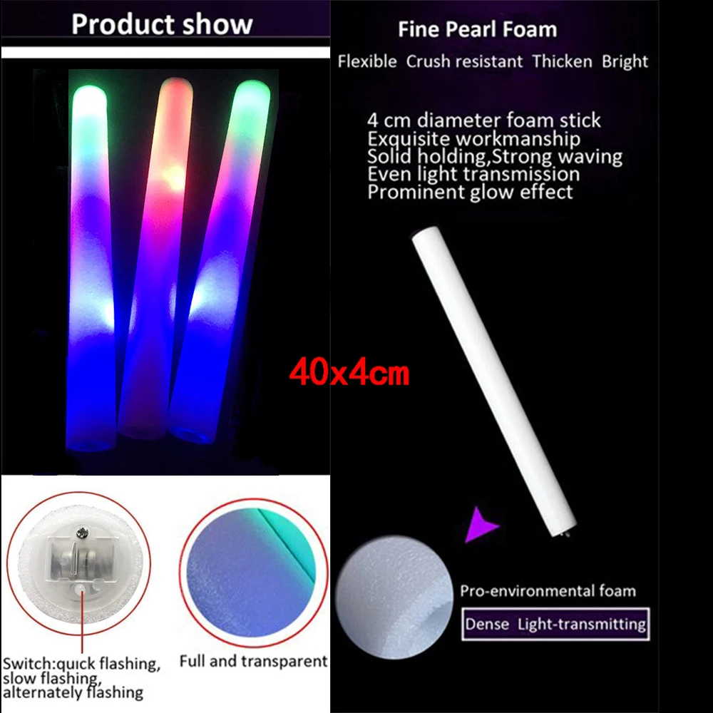 30 шт.лот светящиеся палочки для свадьбы, дня рождения, цветные 3 мигающие светодиодные палочки из пенопласта, светодиодные праздвечерние чные принадлежности с 3 батареями без логотипа