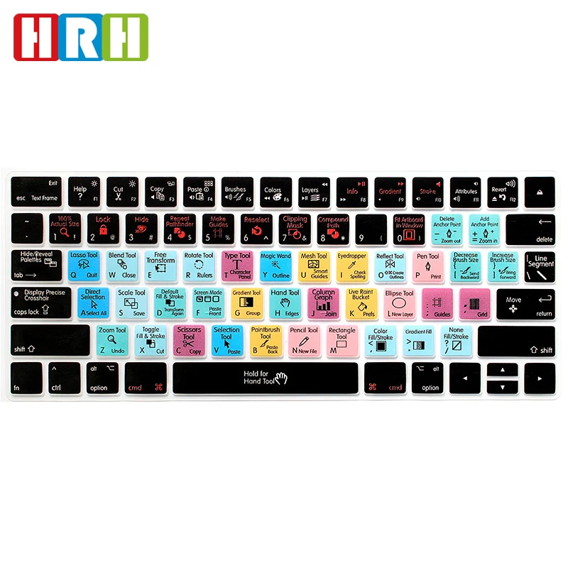 Прочная силиконовая накладка на клавиатуру HRH Adobe Illustrator AI Hotkeys для Apple Magic MLA22BA US для Adobe, защита для клавиатуры