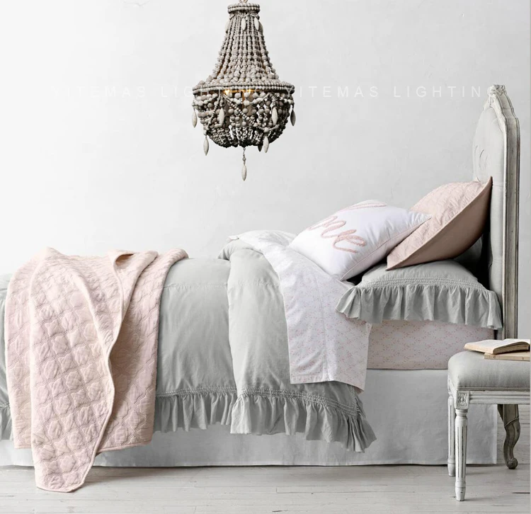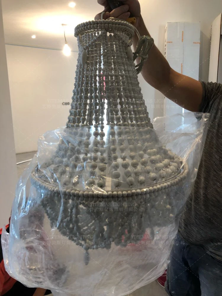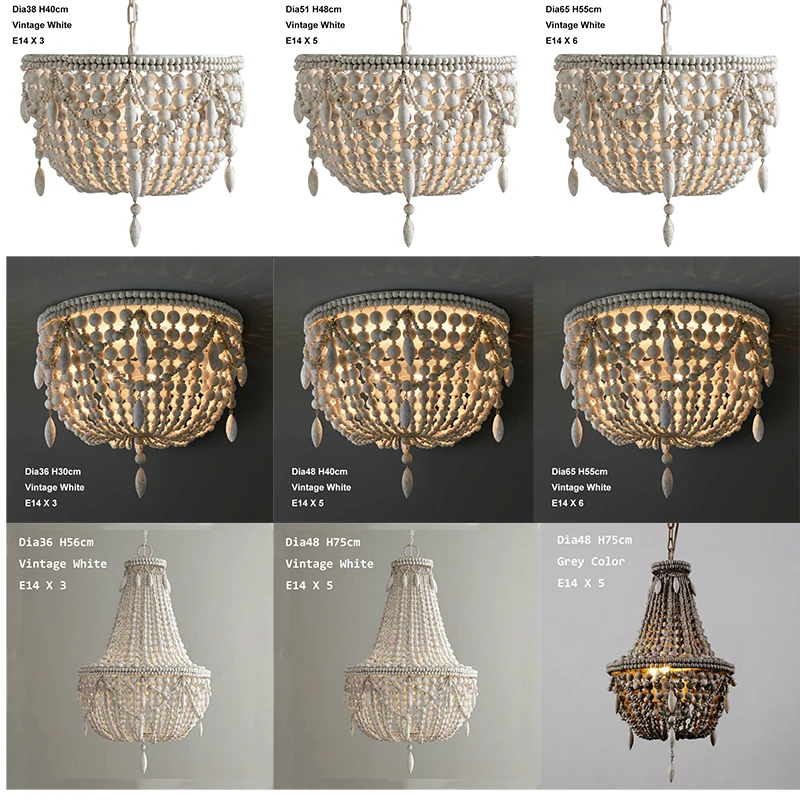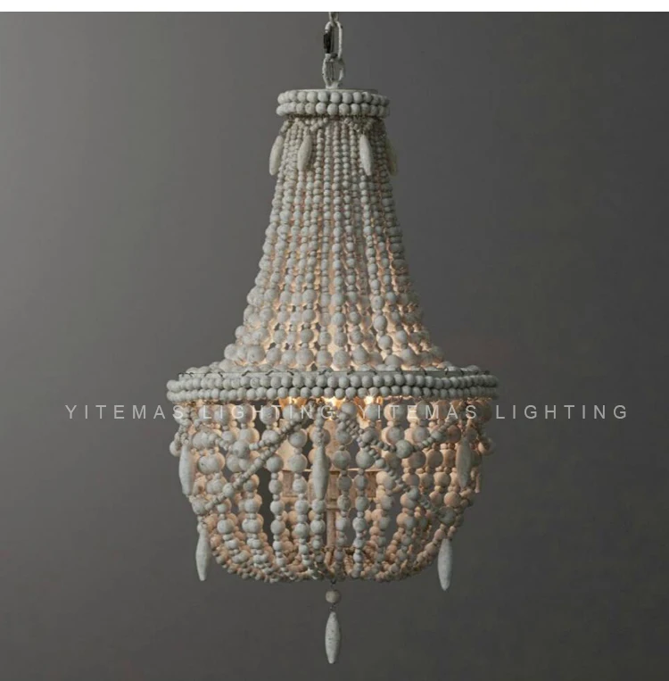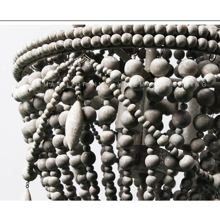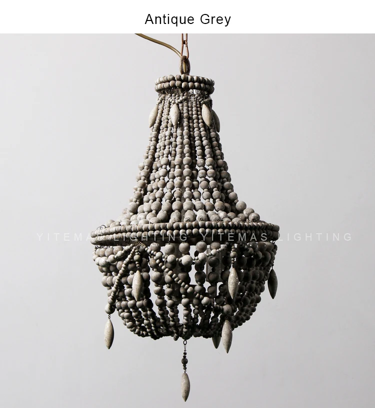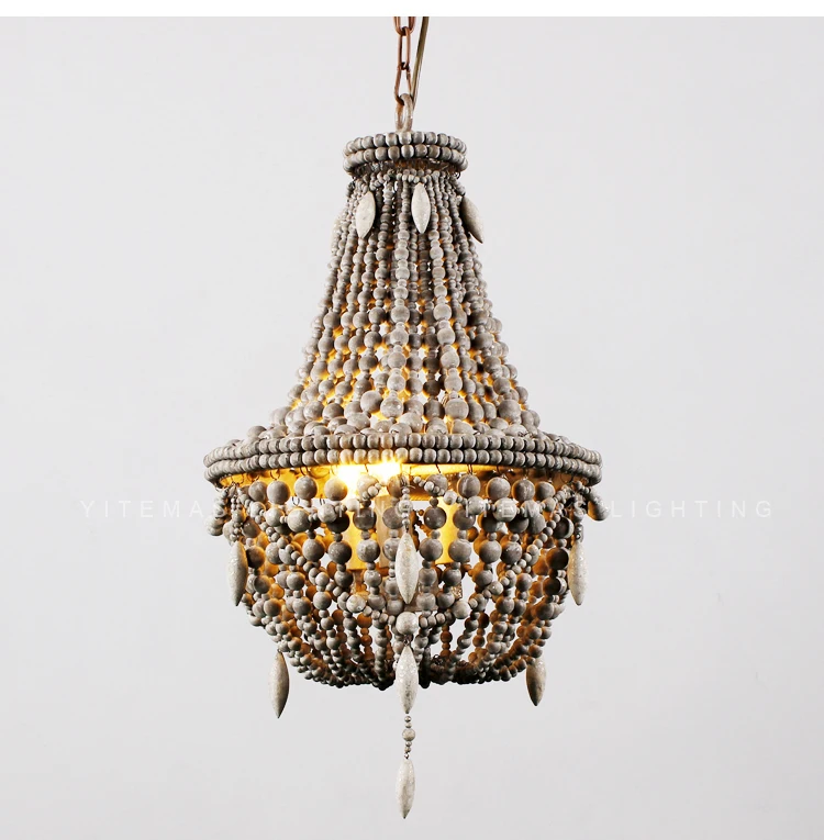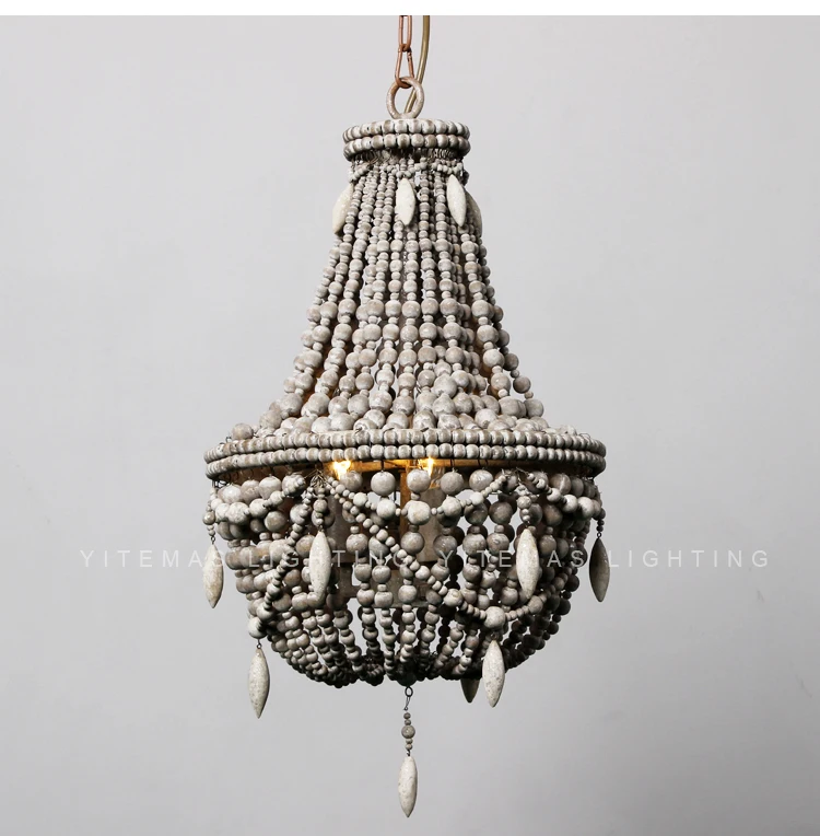 Ретро промышленный деревянный подвесной светильник, винтажный белый/серый деревянный подвесной светильник с бусинами для спальни, столовой, лофта, Скандинавская лампа