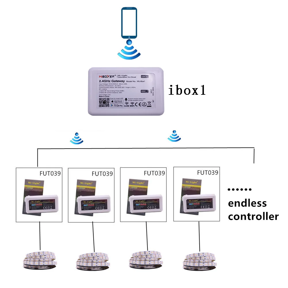 Полноцветный светодиодный пульт дистанционного управления Mi светильник RF 2,4GWifi DC12-24V для светодиодной ленты 5050 2835 RGBCCT RGB + CW + WW.