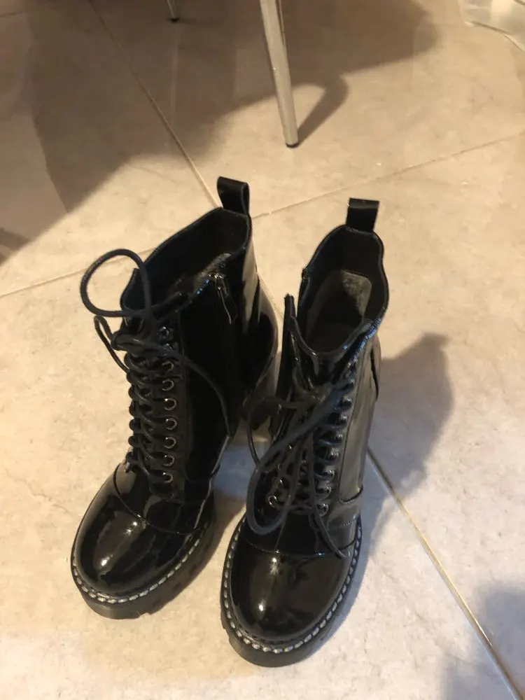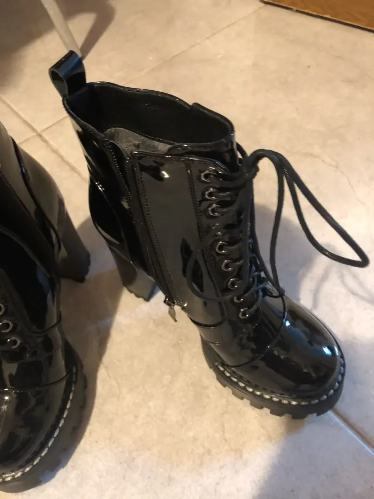 ботинки из лаковой кожи.пришли за 2 недели.хорошо упакованы(в отдельный мешочек),а вместо коробки-пакет с воздушной подушкой.внутри ботиночек что-то типа плюшевой подкладки.к сожалению-на сезон весна-осень,а вовсе не зима.брала 38 размер и не ошиблась,хотя ношу обычно 37.