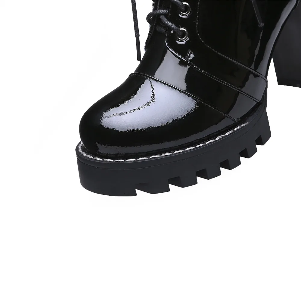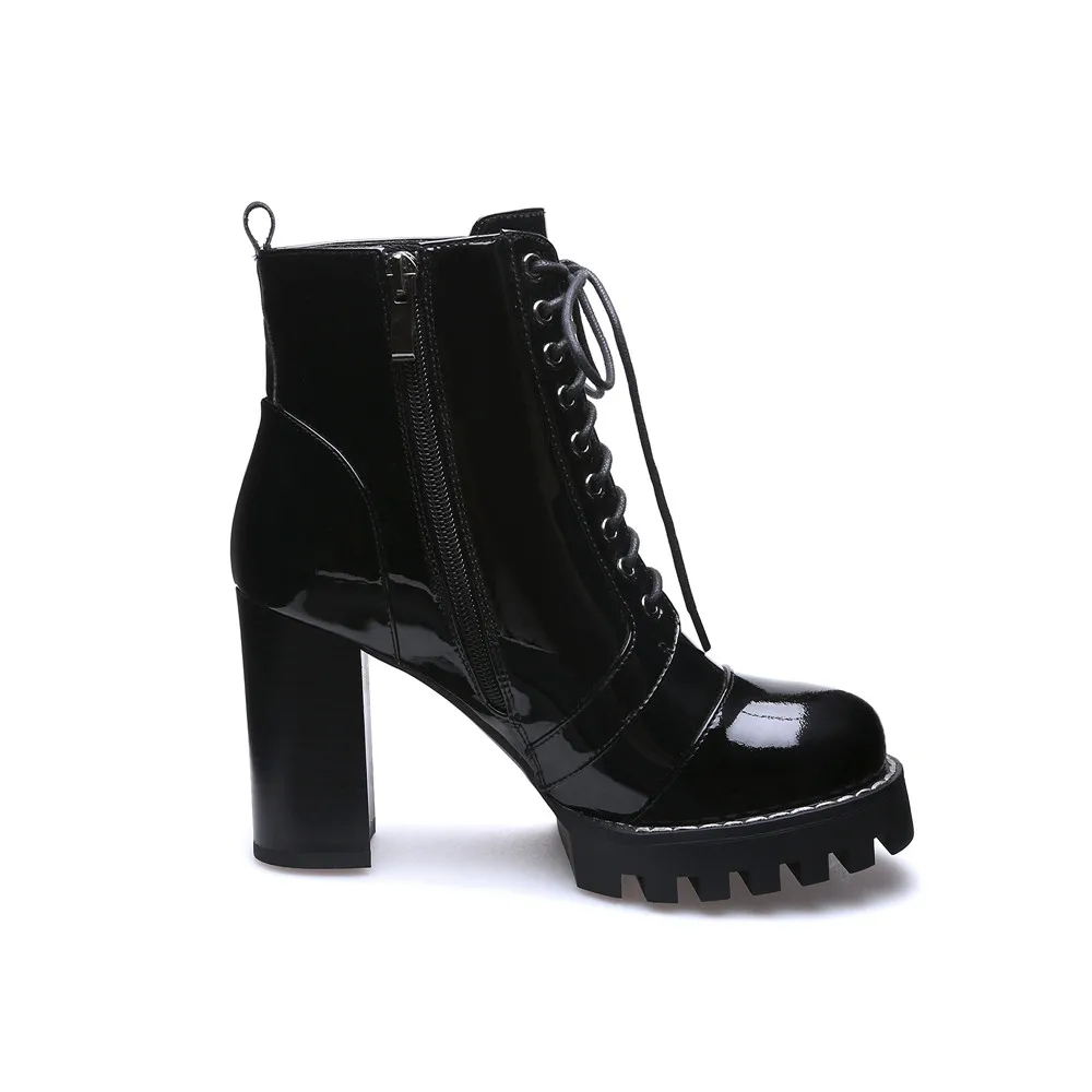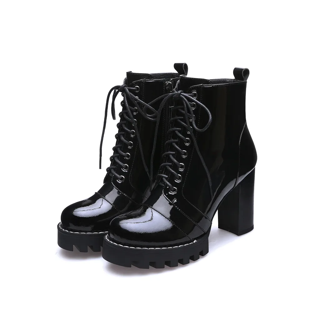 Женские ботильоны на шнуровке MORAZORA, Черные ботильоны из натуральной кожи на платформе и высоком каблуке, Осень-зима 2022