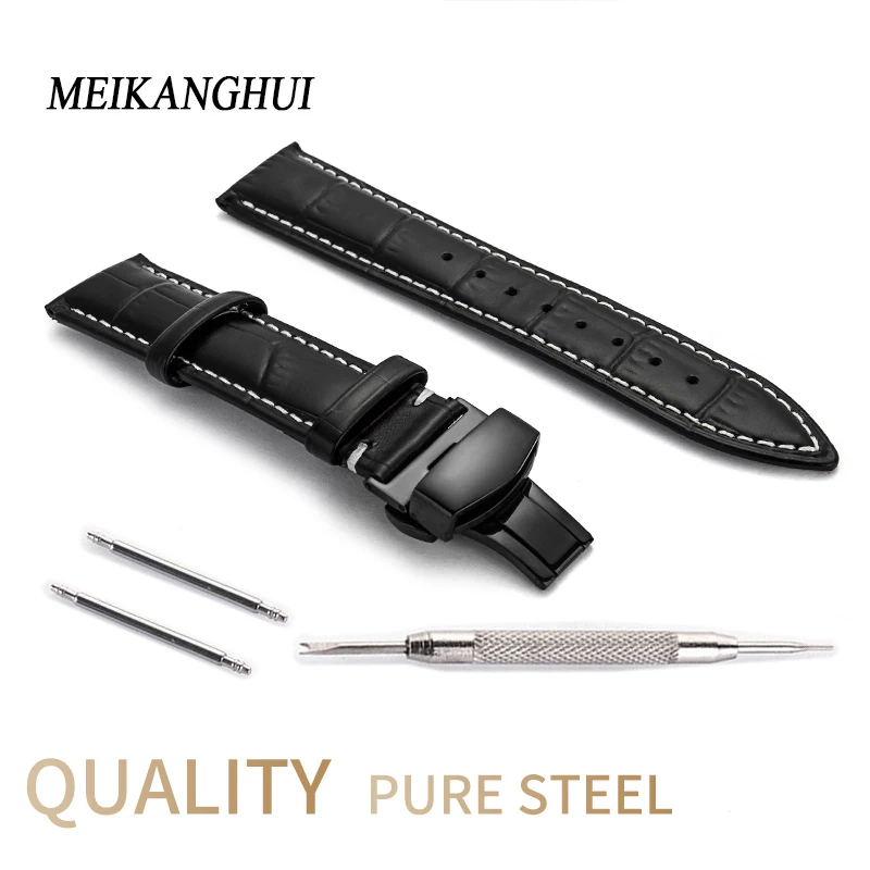 Ремешок для часов, кожаный ремешок 12 13 14 15 16 17 18 19 20 22 24 мм, браслет, Аксессуары для часов, пряжка-бабочка из нержавеющей стали
