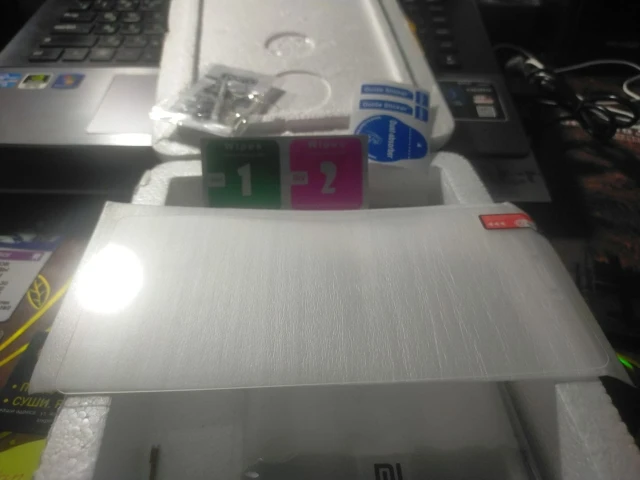 очень качественное стекло, в комплекте все салфетки, гель,упаковка отличная. На MI MAX 2 на миллиметр меньше с каждого края чем родное