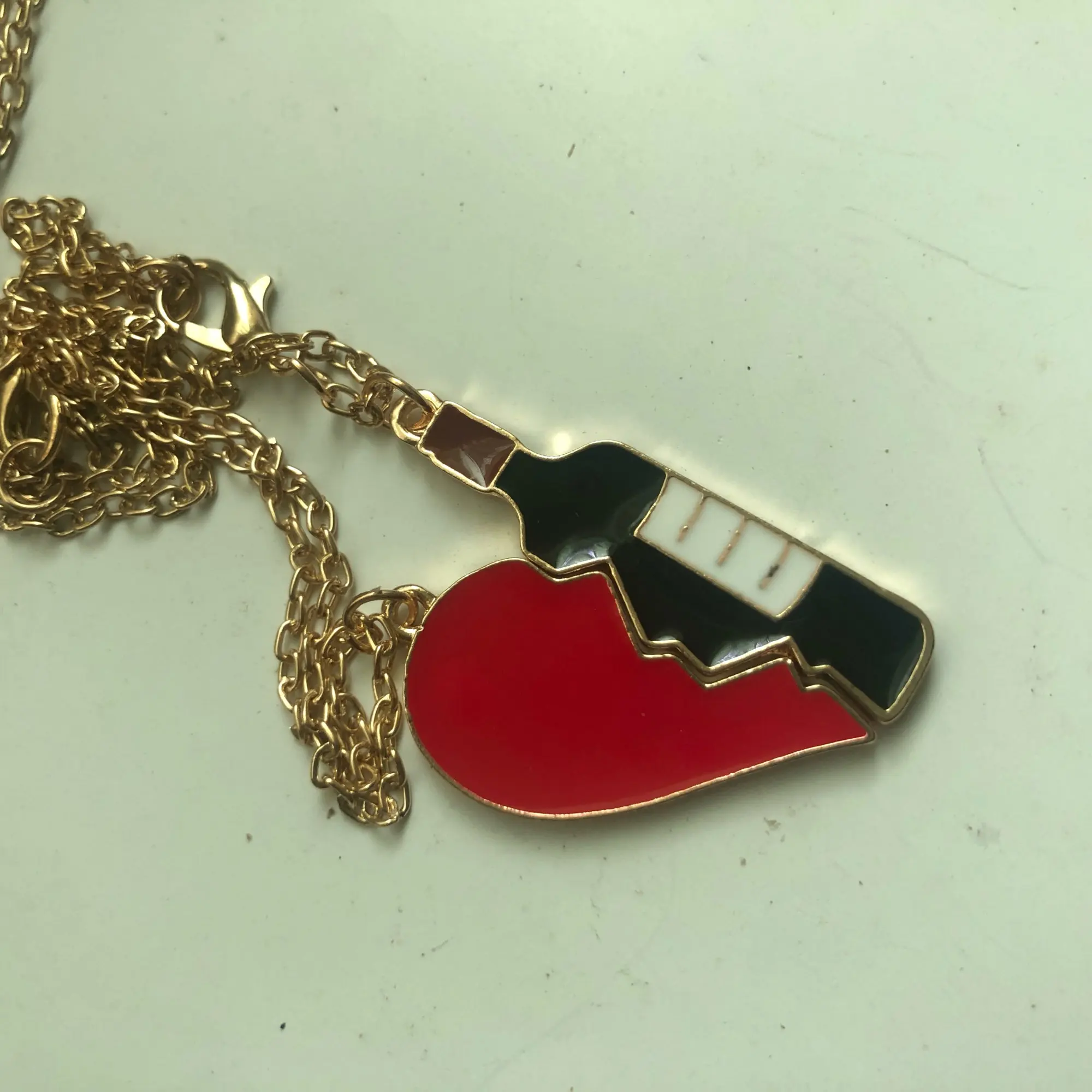 2 шт.компл. колье с кулоном разбитое красное сердце и бутылка вина, подарок на день Святого Валентина