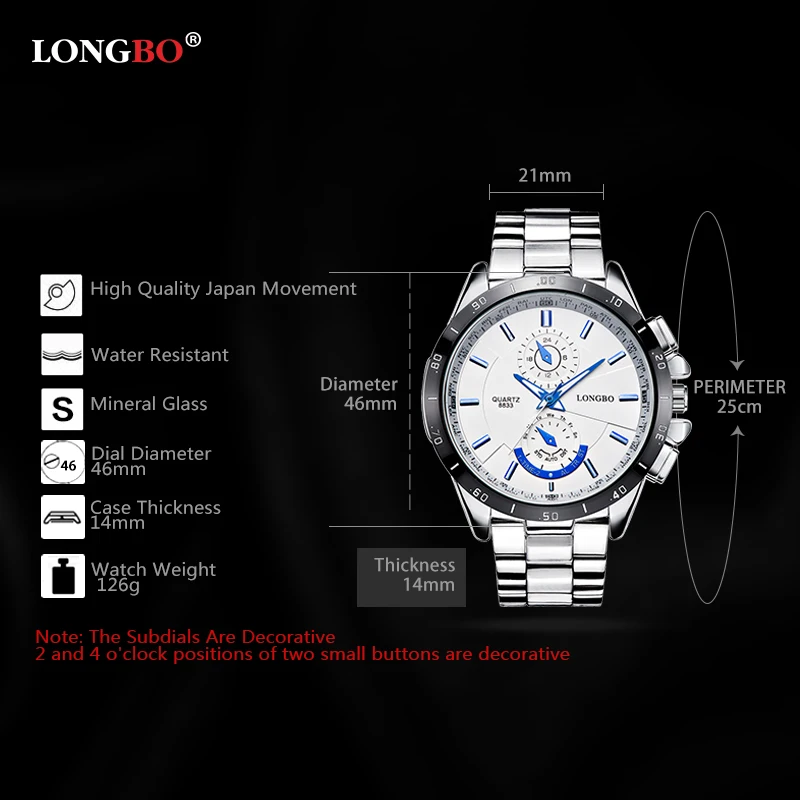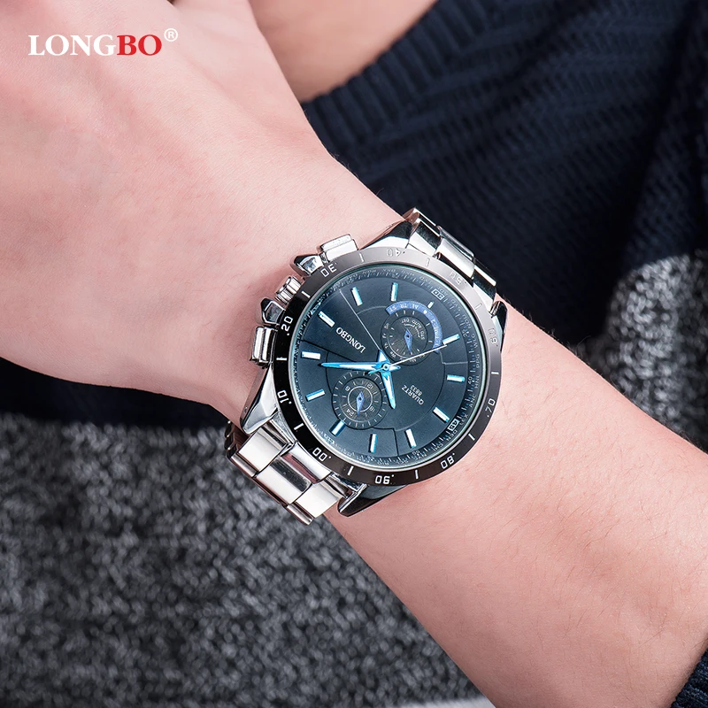 2018 Longbo модный бренд спортивный стиль полностью из нержавеющей стали светящиеся водонепроницаемые кварцевые деловые Роскошные наручные часы Мужские часы