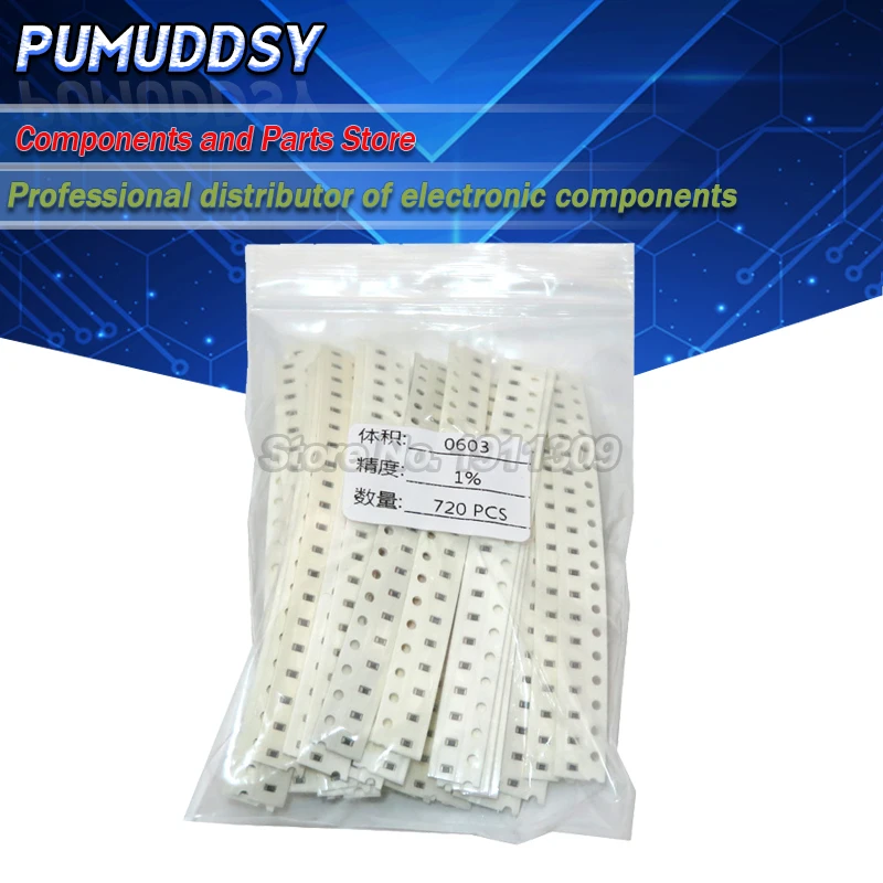 36valuesX20pcs = 720PCS 0603 1ohm-10Mohm SMD набор резисторов в ассортименте 1% компонентов набор для самостоятельной сборки образцов новый и
