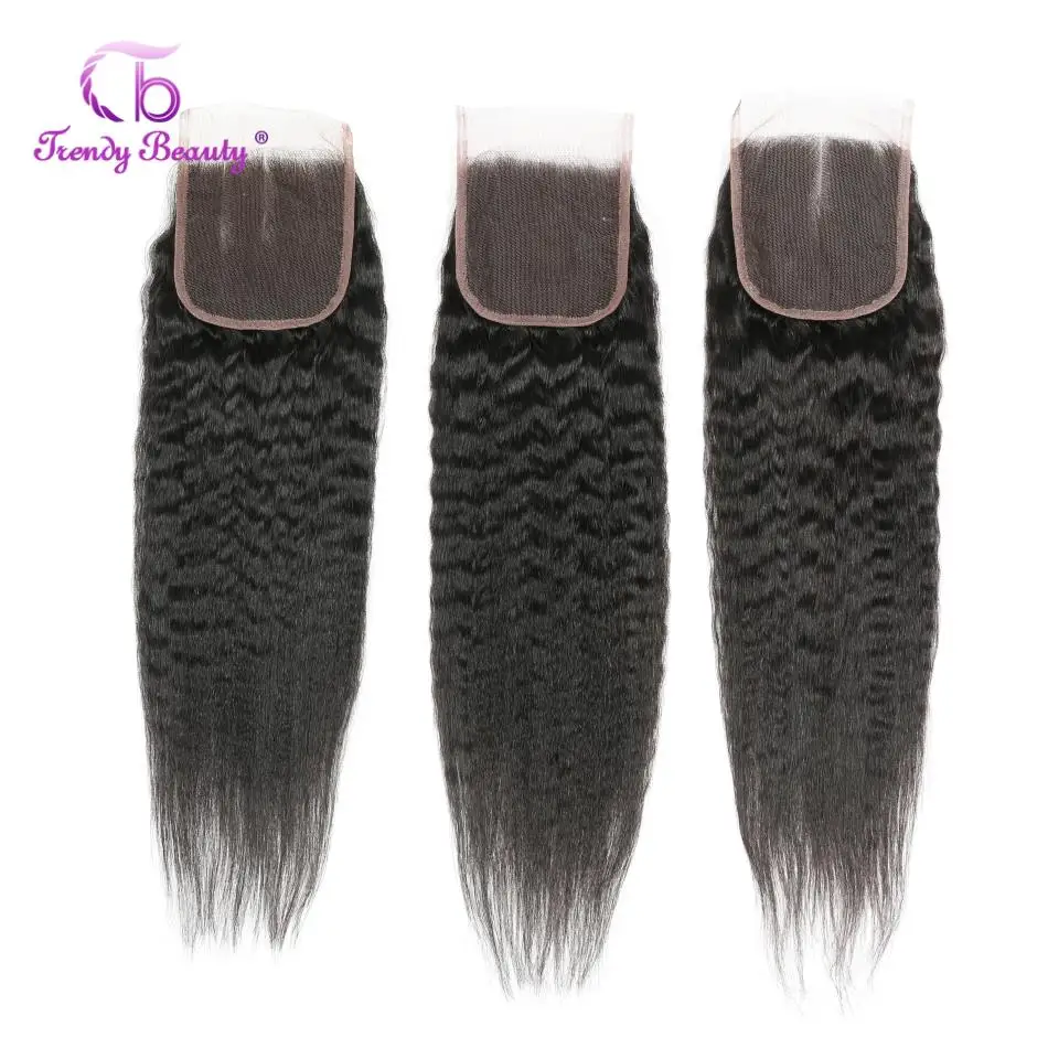 Бразильские кудрявые прямые 34 пряди с 4x4 кружева закрытие кудрявы...