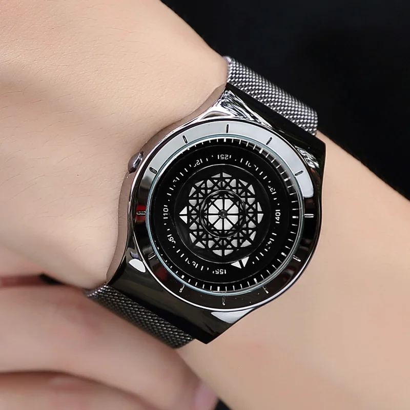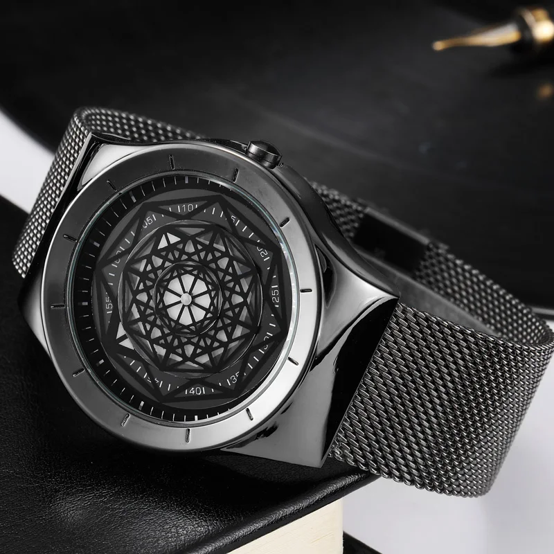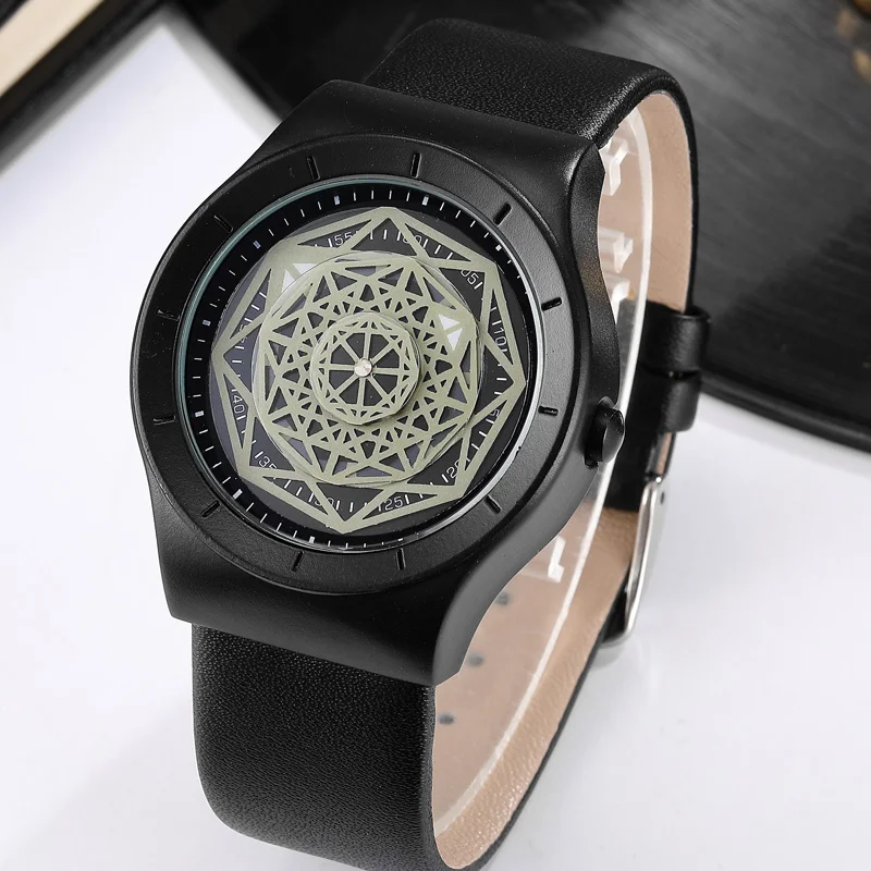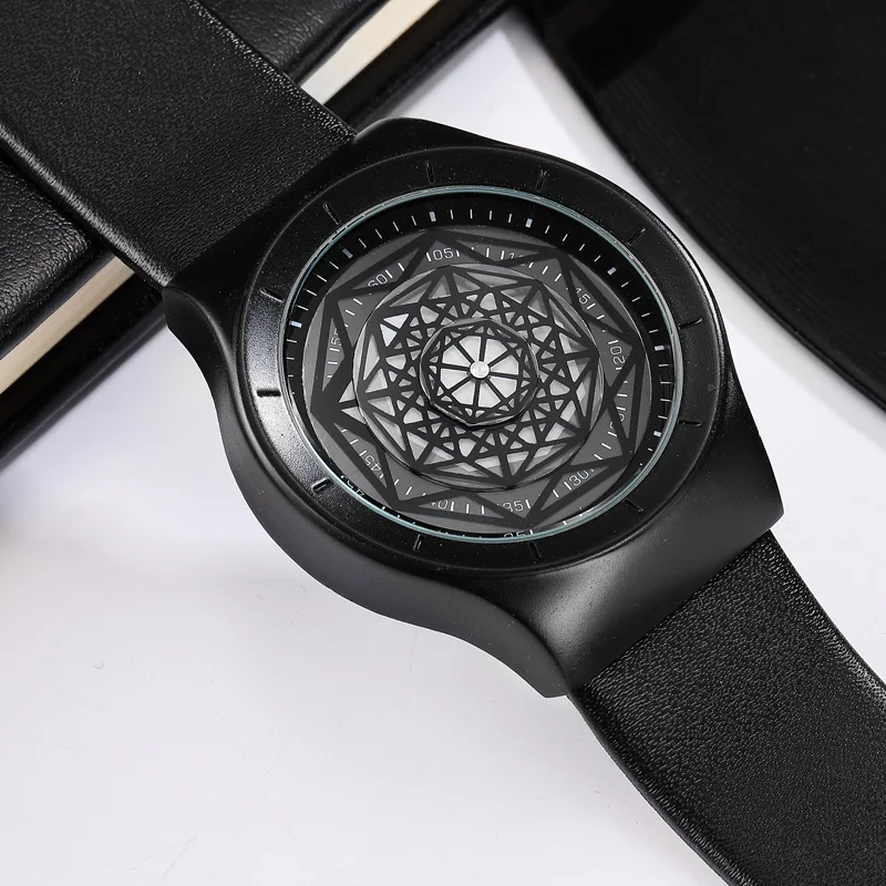 Часы наручные Geek Мужские кварцевые в минималистичном стиле, с поворотным циферблатом, с кожаным сетчатым ремешком, подарок для мужчин