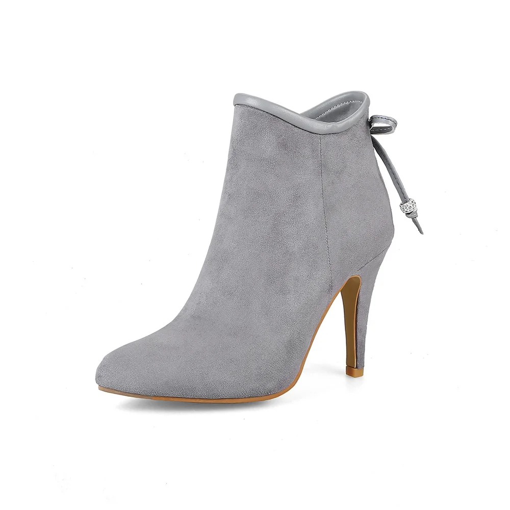 Женские ботильоны на высоком каблуке-шпильке, серые или черные ботинки под платье, розовые ботинки на высоком каблуке, большой размер 10, 32, 45, 48, для зимы