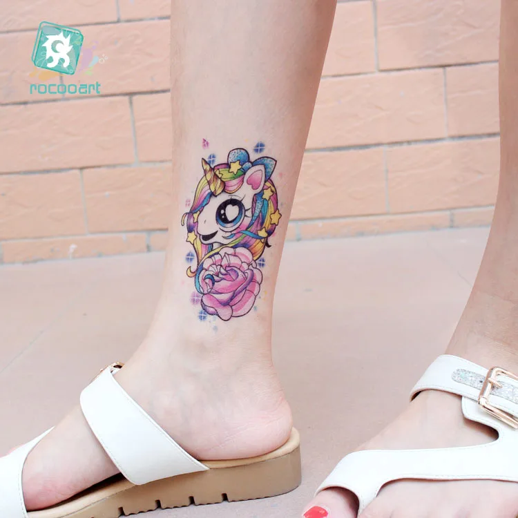 Rocooart Rainbow тату Единорог японские Ukiyoe поддельные тату боди-арт Flash Taty на грудь временные тату-наклейки для детей