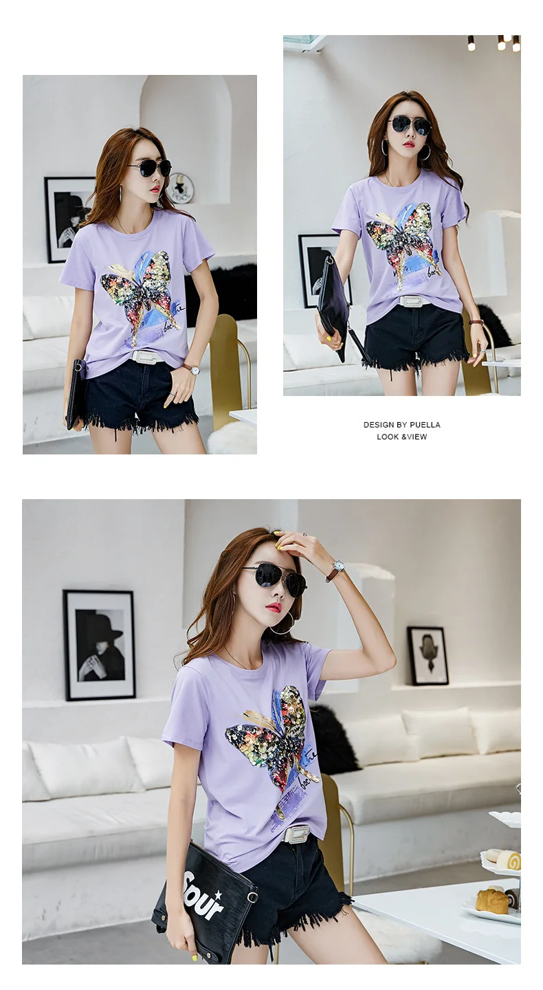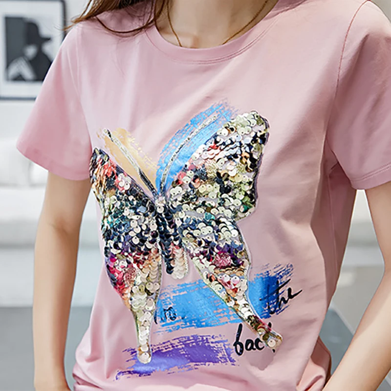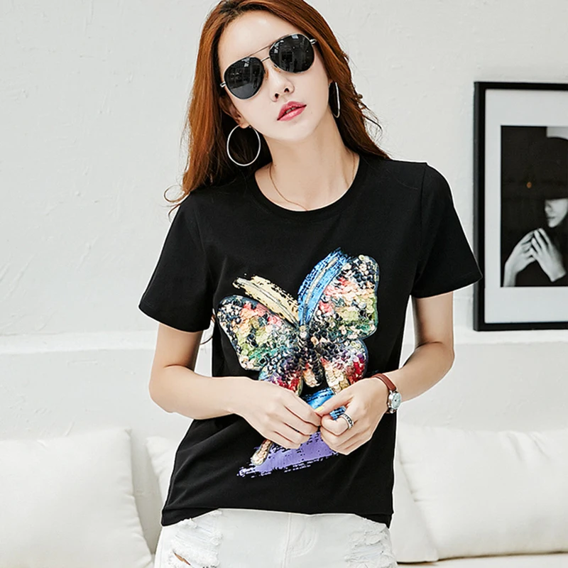 Футболка Shintimes, женская футболка с блестками, футболка, женские летние топы, Повседневная футболка с коротким рукавом, женские летние футболки 2022