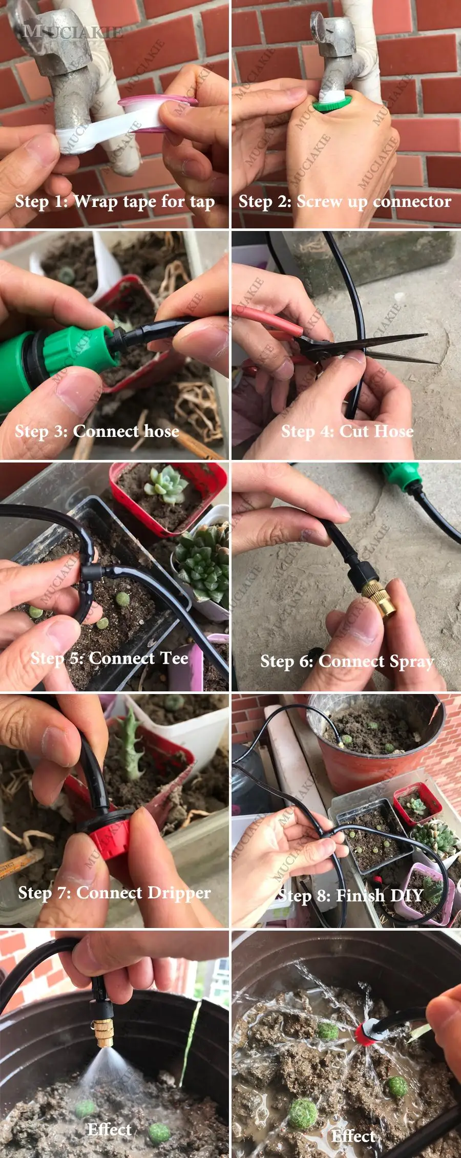 Система полива сада MUCIAKIE, комплект для полива сада 10 м 15 м 20 м 25 м 30 м с ПВХ шлангом, разбрызгиватель, капельница, тройник, адаптер