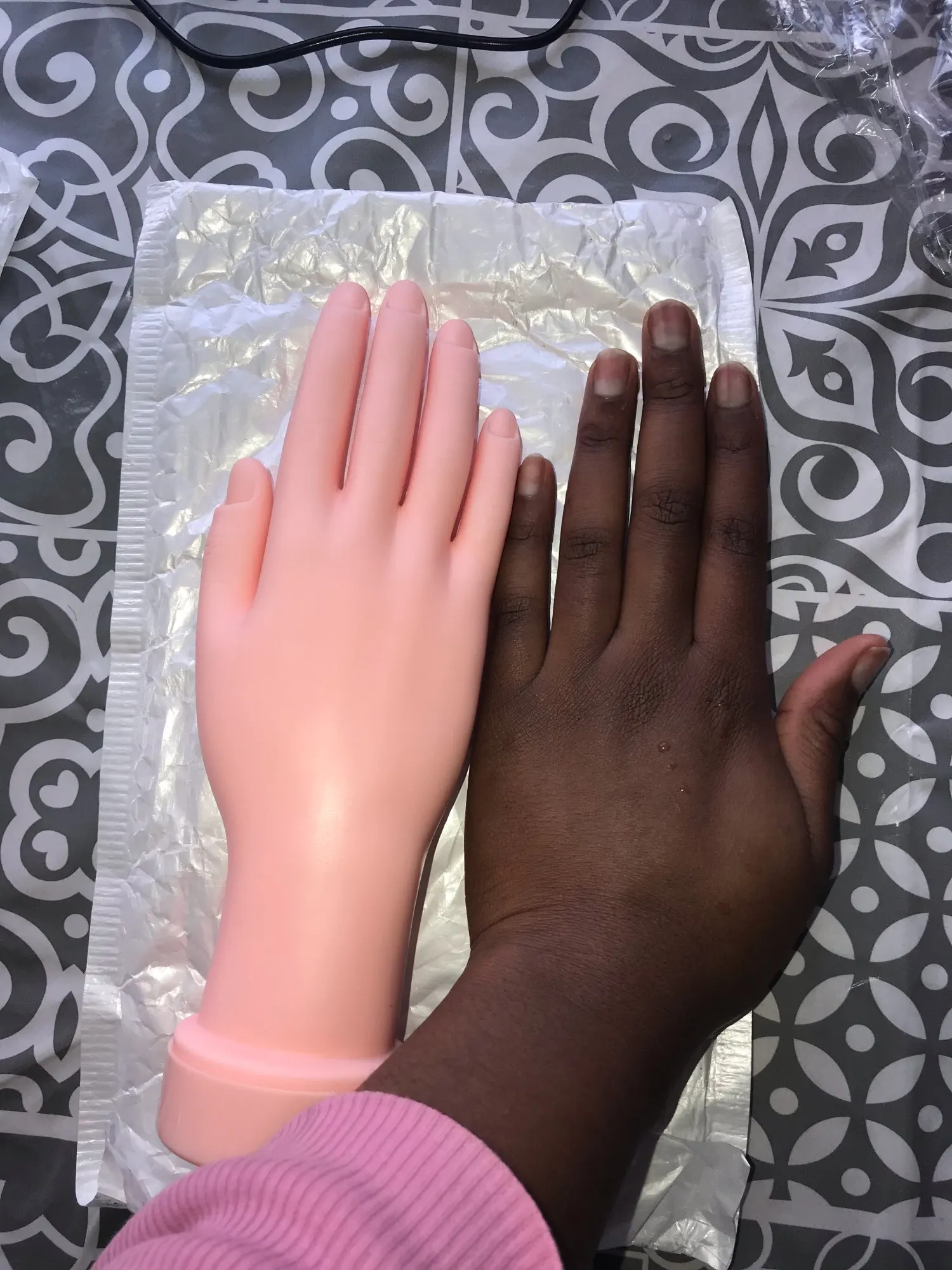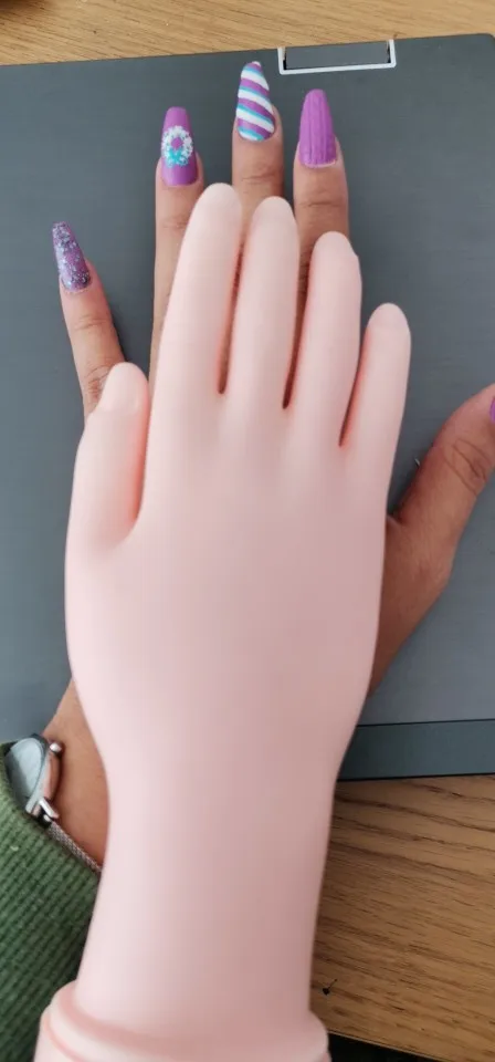 Спецификация: Цвет: телесный цвет Размер: прибл. 22 * 8,5 * 5,5 см Материал: высококачественный силикон и акрил Тип: Тренировочная модель руки Особенность: 1. Регулируемый и многоразовый 2. Идеально подходит для начинающих нейл-арта, ускоряет процесс обучения 3.Маникюрные салоны используют художники, повышая уровень вашего мастерства 4. Эта модель Hand изготовлена из прочного и в то же время мягкого, гибкого пластика и практически полностью соответствует своему размеру. 5. ложные кончики ногтей можно плотно вставить в пальцы, затем вы можете создавать и рисовать на них рисунки для ногтей. Тренировочную руку можно использовать повторно. В комплект входит: 1 тренировочная модель руки