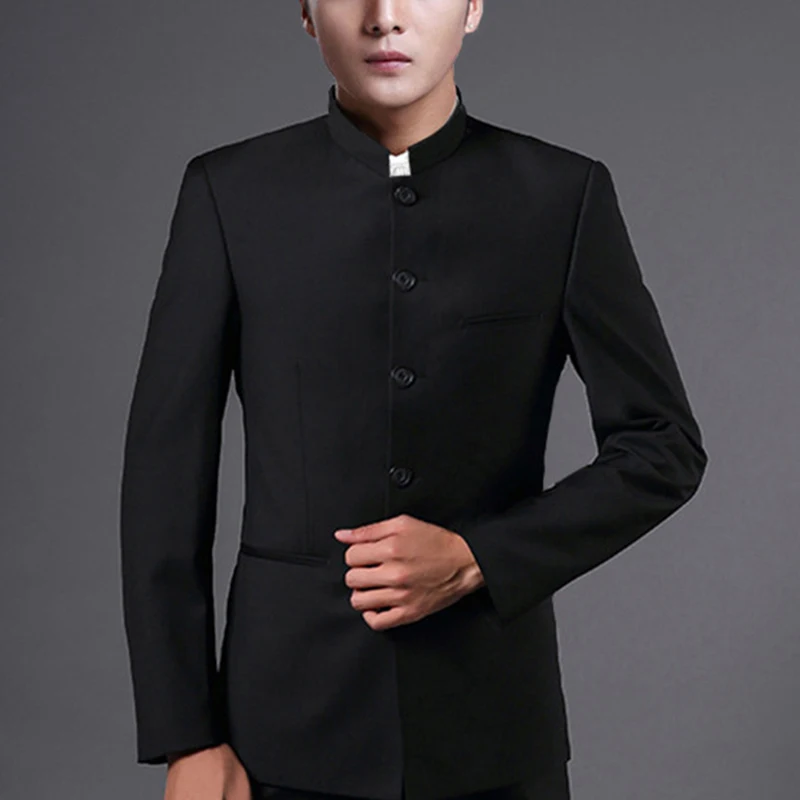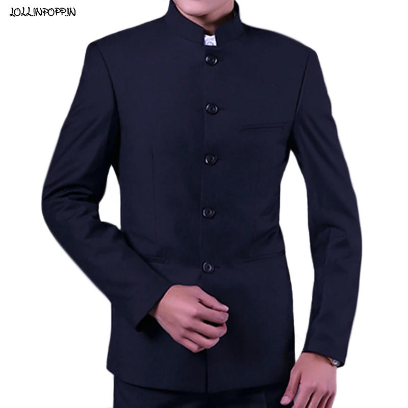 Пиджак мужской с воротником-стойкой, темно-синий пиджак в традиционном китайском стиле, однобортный пиджак-туника, униформа