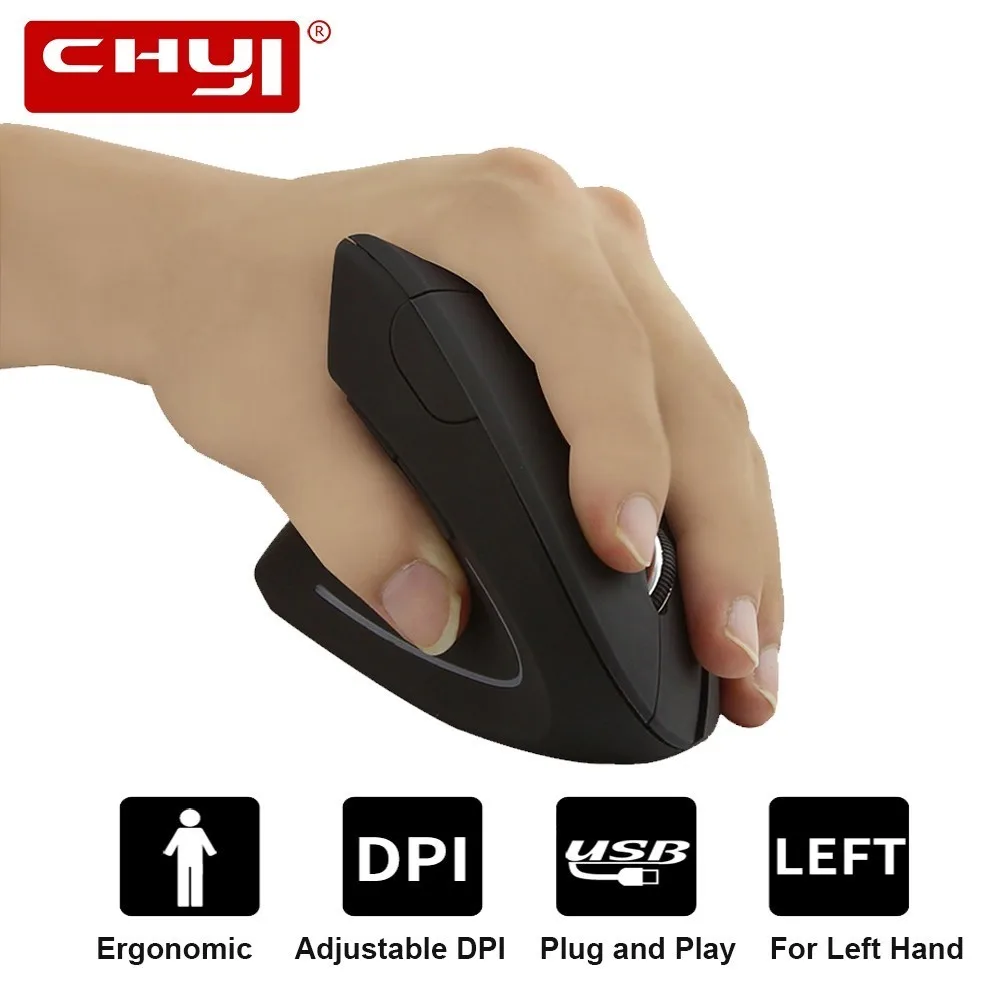 CHYI левой рукой Беспроводной вертикальный эргономичный Мышь 2,4 Оптическая Usb компьютерная мышь левая рука 6 Кнопка ПК Компьютерные мыши с подсветкой для ноутбука
