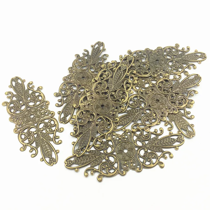 Винтажные филигранные обертки с бронзовым цветком и коннектором, ювелирные украшения из сплава, фурнитура сделай сам 8,5x3,4 см, 10 шт.