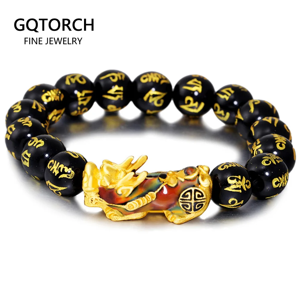Браслет с бусинами мантры из натурального черного оникса с термохромными подвесками Pixiu, ювелирные изделия ручной работы