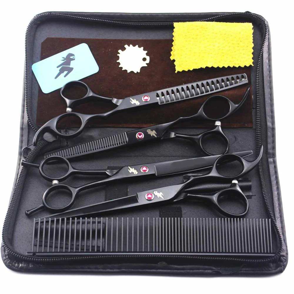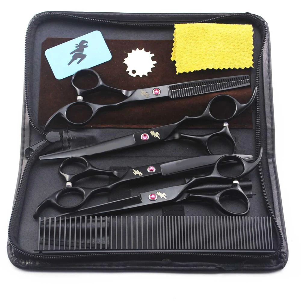 Профессиональные Фотоэлементы 7 дюймов, прямые филировочные ножницы и изогнутые кусочки 4 шт., технические черные