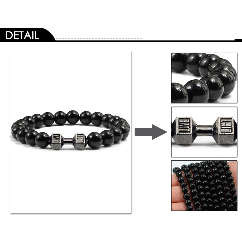 1 шт. мода натурального камня браслет мужчины подходят для жизни черные матовые камни гантель браслет фитнес тренировки и тренажерный зал Ювелирные изделия Подарки для женщин
