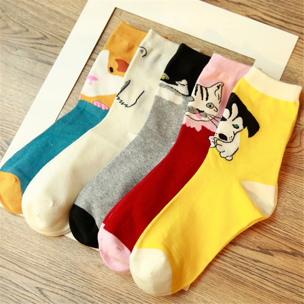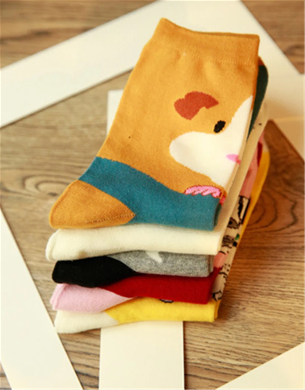 Носки унисекс с забавными мультяшными животными, теплые мягкие хлопковые носки для девочек, корейский милый счастливый кот, хомяк, собака, 2 шт. = 1 пара