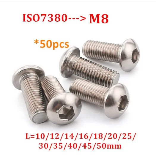50 шт. ISO7380 M8 винты для головки кнопки 304 Нержавеющая сталь A2 Шестигранная розетка с круглой головкой Винты с шестигранной головкой болты длина 10-50 мм