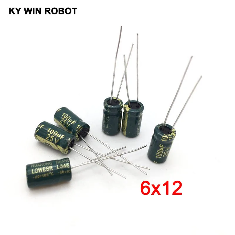 20 шт.лот 25 в 100 мкФ 6х12 мм высокочастотный низкоимпедансный алюминиевый электролитический конденсатор 100 мкФ 25В