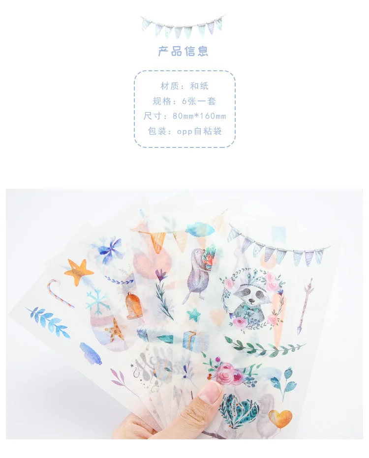 6 шт.упак. Васи Бумага DIY Журнал, декоративные клеящаяся Стикеры, дети ремесло Скрапбукинг мультфильм Стикеры Набор для дневник альбом