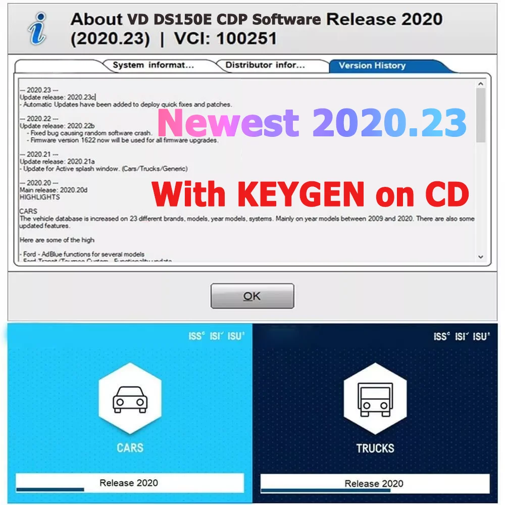 Новое поступление 2020,23 с генератором ключей на CD DVD диске 2018.R0 2017.R3 для delphis VD DS150E CDP с поддержкой 21 языковой проверки автомобиля грузовика