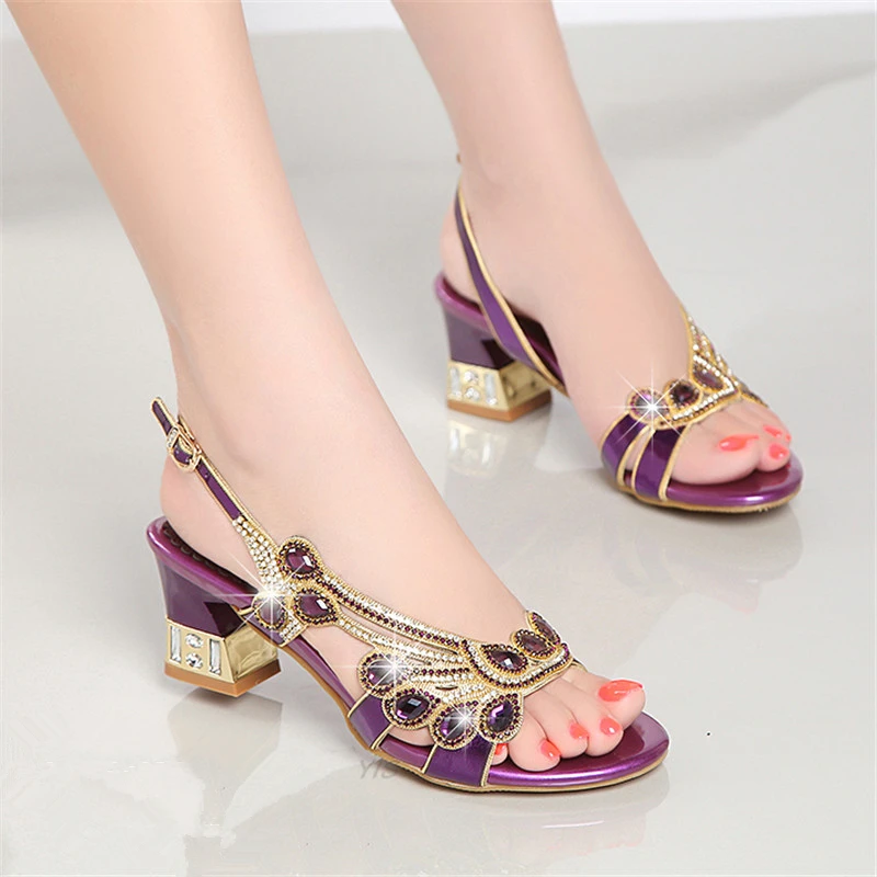 Летние Павлин со стразами на толстом каблуке; Сандалии с украшениями разноцветные стразы женские туфли-лодочки пикантные женские туфли класса люкс с прямым валиковым швом; Свадебные туфли D0037