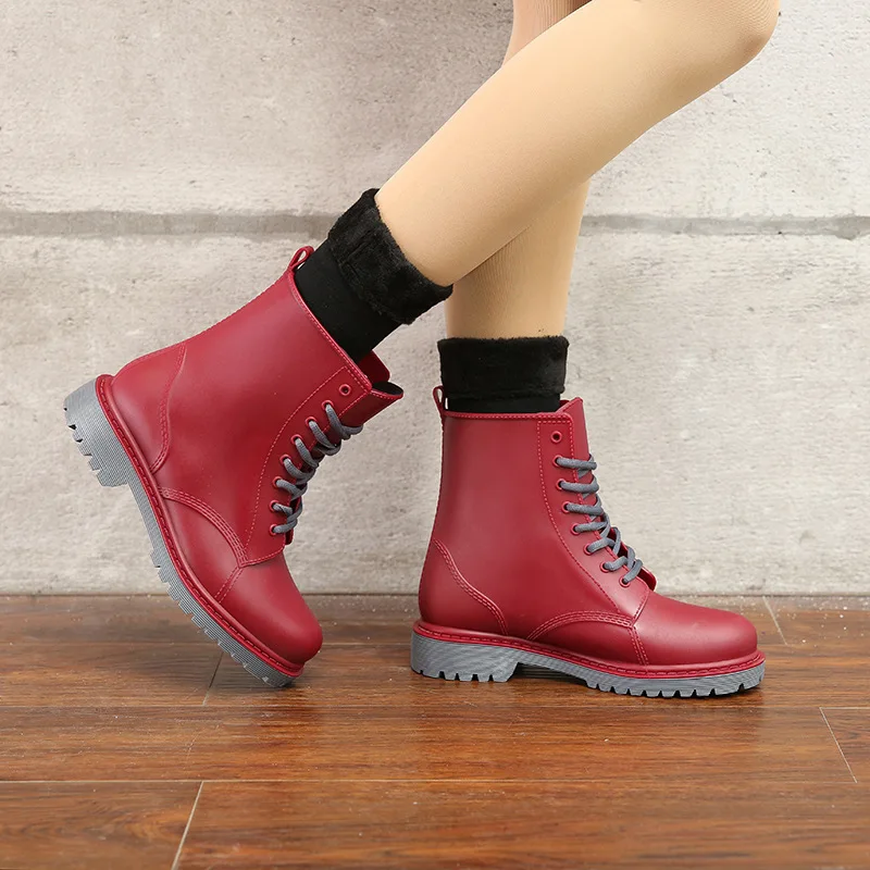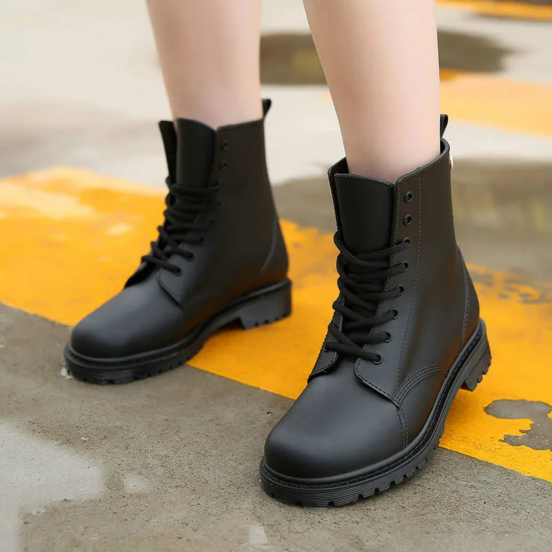 Ботинки Martin женские резиновые, водонепроницаемые сапоги на шнуровке, прочная обувь на плоской подошве, 2020