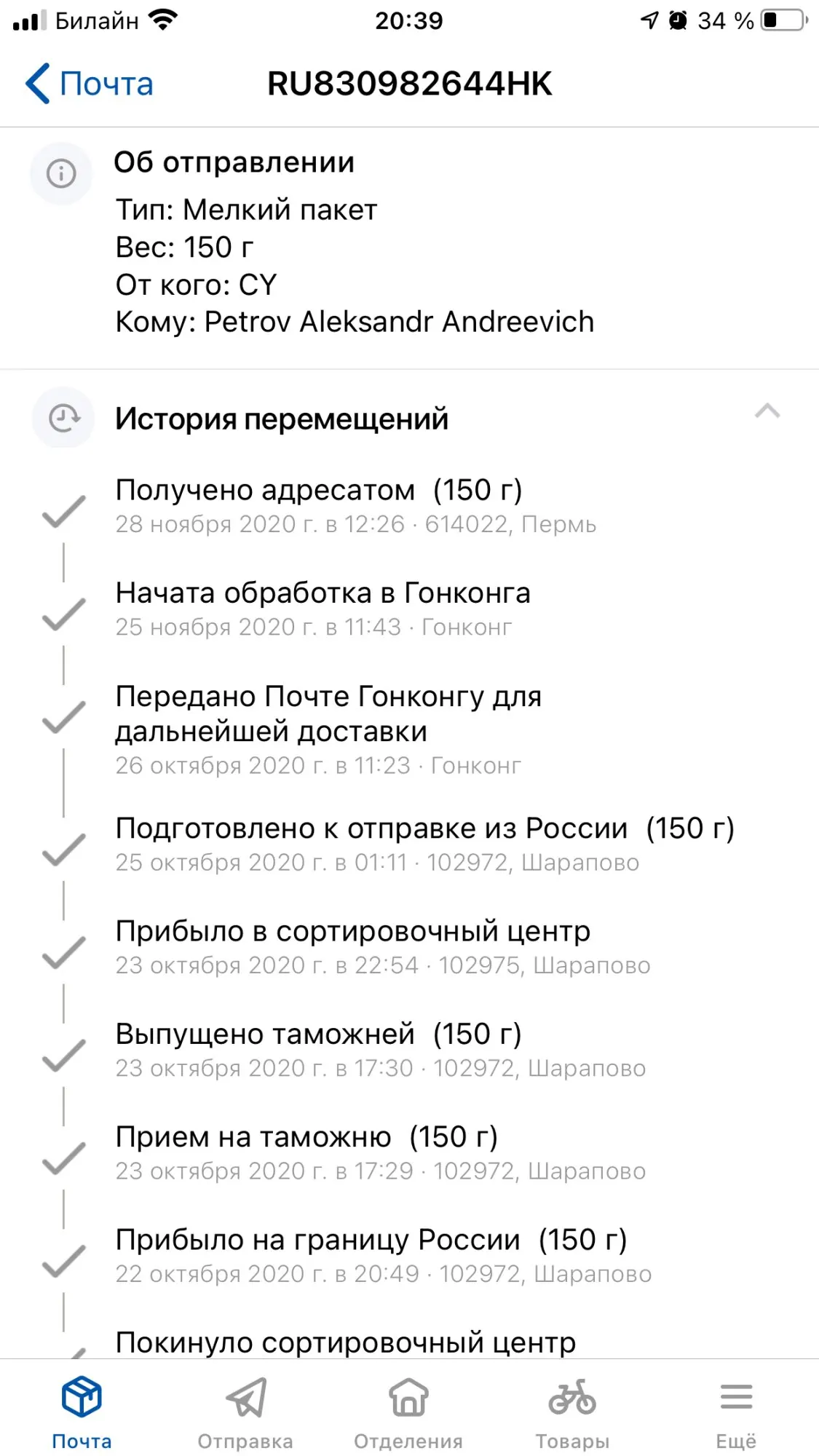 Товар пришёл на почту России, оповещений о приходе не было, в Итоге посылка ушла обратно, в соответствии с информацией сайта почта России - продавец получил обратно посылку - однако в возврате денег отказал! Не рекомендую покупать у них