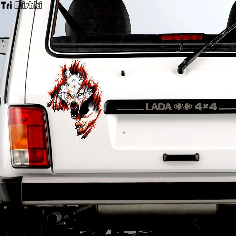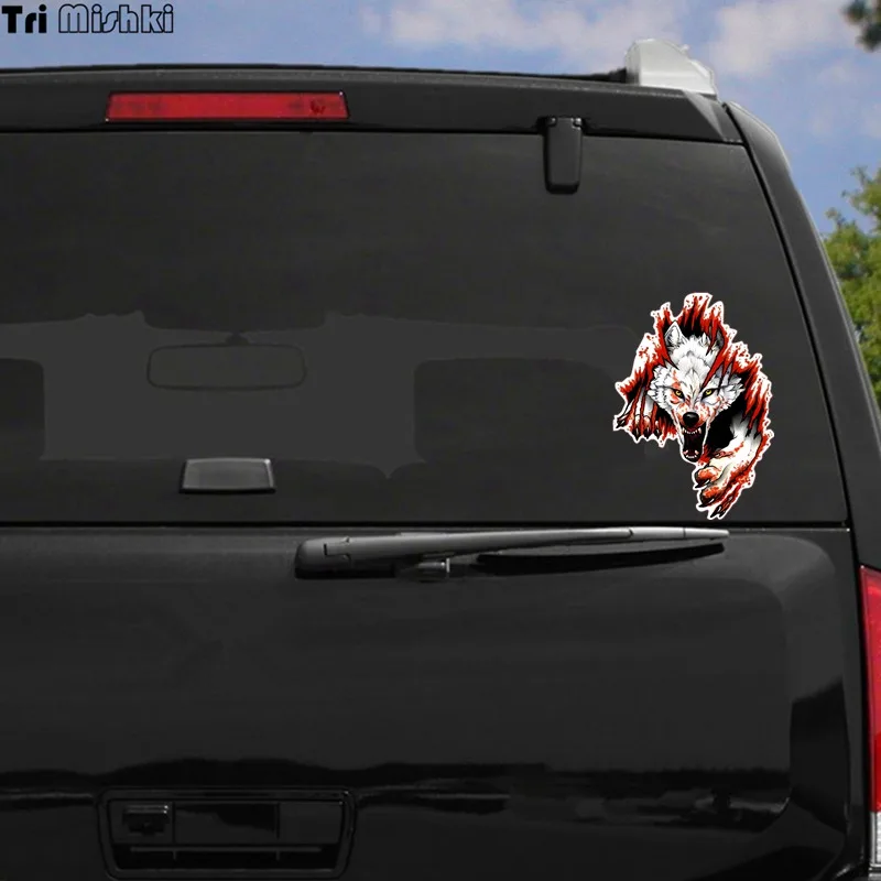 Tri Mishki WCS037 13*18,3 см 10,6*15 см сердитый волк из отверстия забавная наклейки на авто ПВХ цветные стикеры на мотоцикл акссесуары наклейки