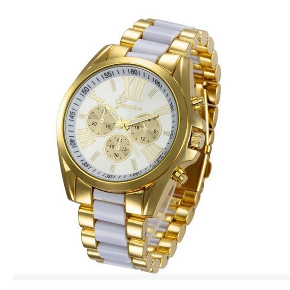 Часы наручные мужские кварцевые, люксовые брендовые золотистые модные, полностью из нержавеющей стали