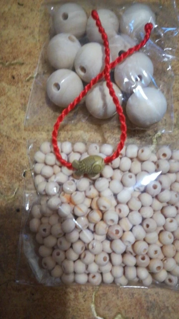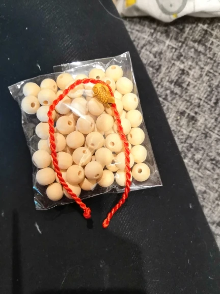 Отверстия на бусинах разного диаметра,но это не критично. + получила небольшой подарочек- красную ниточку, за что отдельное спасибо продавцу))))