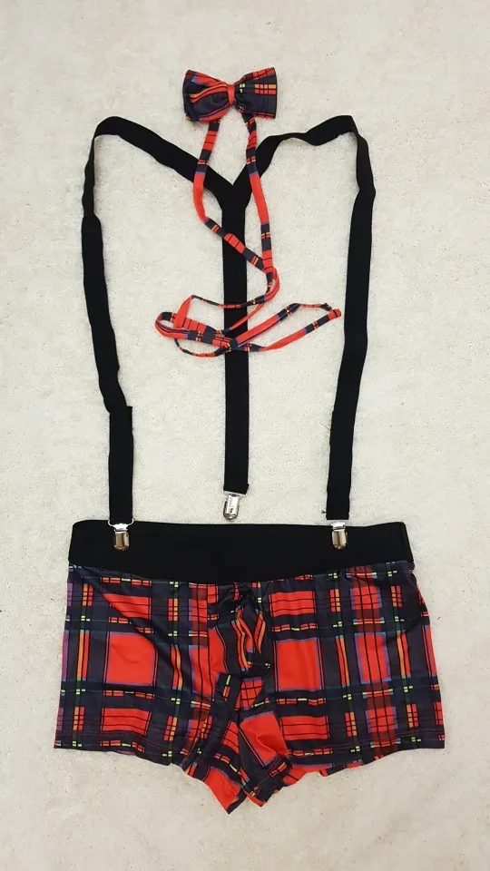 Особенности:Мужской комплект нижнего белья для взрослых, трусы-боксеры с подтяжками и бантом, особый дизайн.Нижнее белье с удобным эластичным поясом, клетчатым узором, спереди с объемным мешочком, мягкая и удобная посадка.Эластичные y-образные подтяжки с 3 металлическими прочными зажимами для подключения ваших трусов-боксеров. Клетчатая галстук-бабочка с длинными лямками сзади.Идеально подходит для костюмированной вечеринки, клубной одежды, одежда в стиле Рейв, вечерние, белье для ночного белья и само-удовольствие, сделает вас более привлекательными.Пожалуйста, внимательно проверьте таблицу размеров перед покупкой, ручная и машинная стирка в холодной воде.