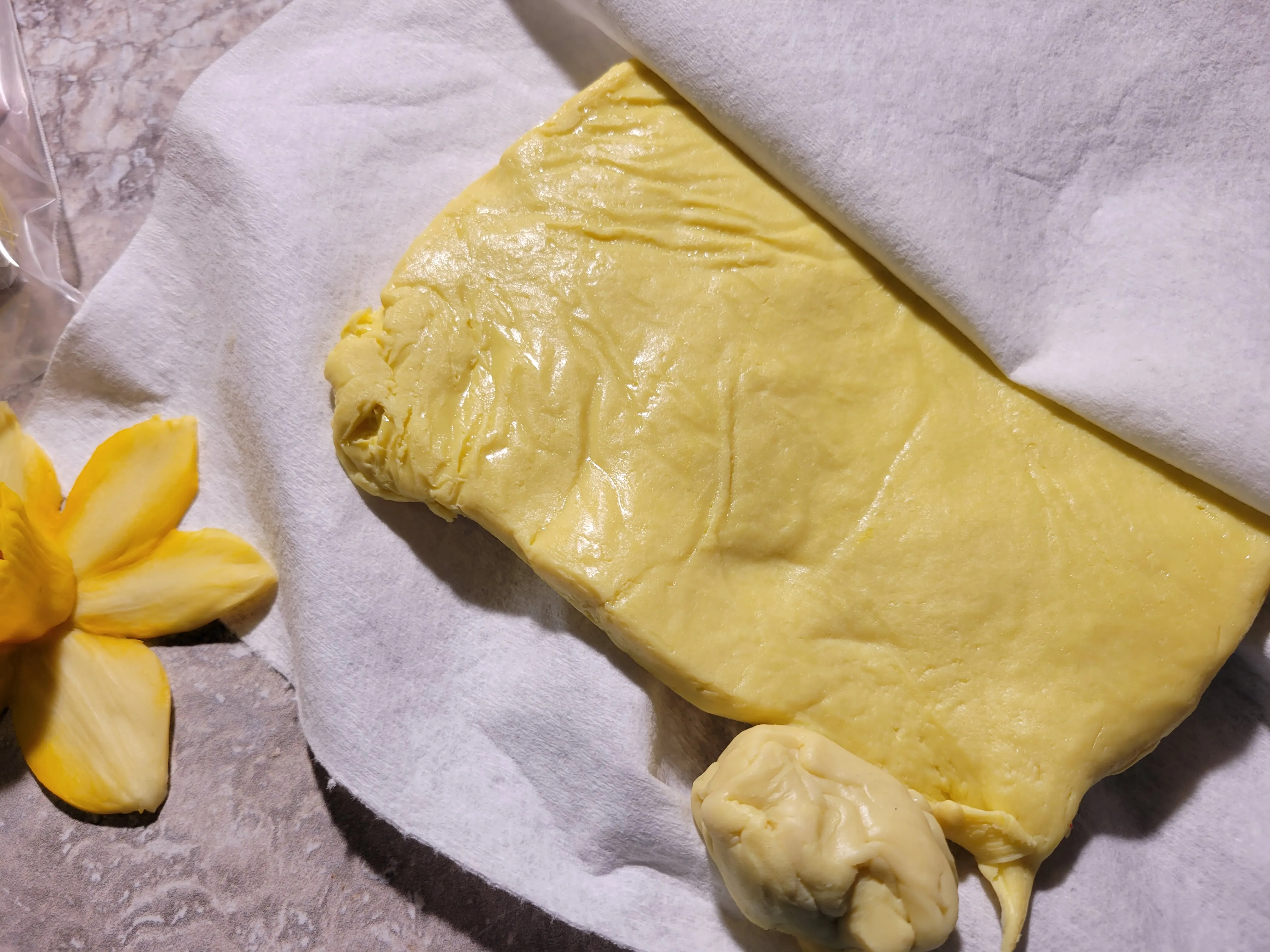 Светло-желтый цвет был очень мягким и липким, поэтому, прежде чем я смогу использовать его, нужно будет немного закрепиться в бумажном полотенце (чтобы удалить дополнительные масла). Однако мне удалось смешать его с некоторыми старыми, сухими премо и сернитом, чтобы сделать некоторые из них пригодными для использования прямо сейчас. Консистенция варьируется между блоками. Я предпочитаю те, которые средней прочности. По этой консистенции и текстуре я могу получить действительно тонкие листы этой глины, которые мне очень нравятся.