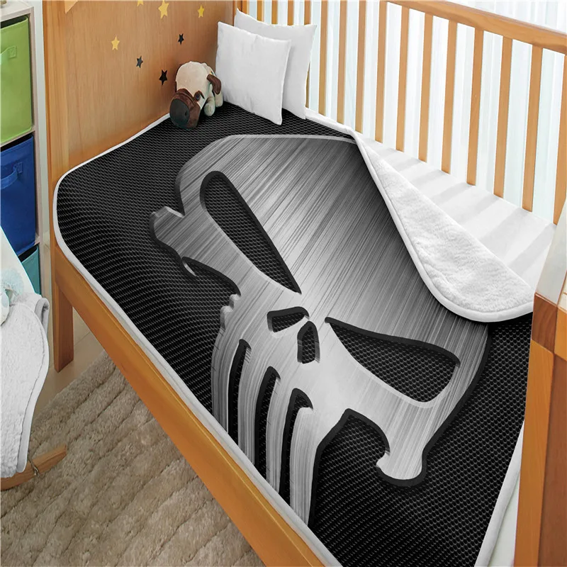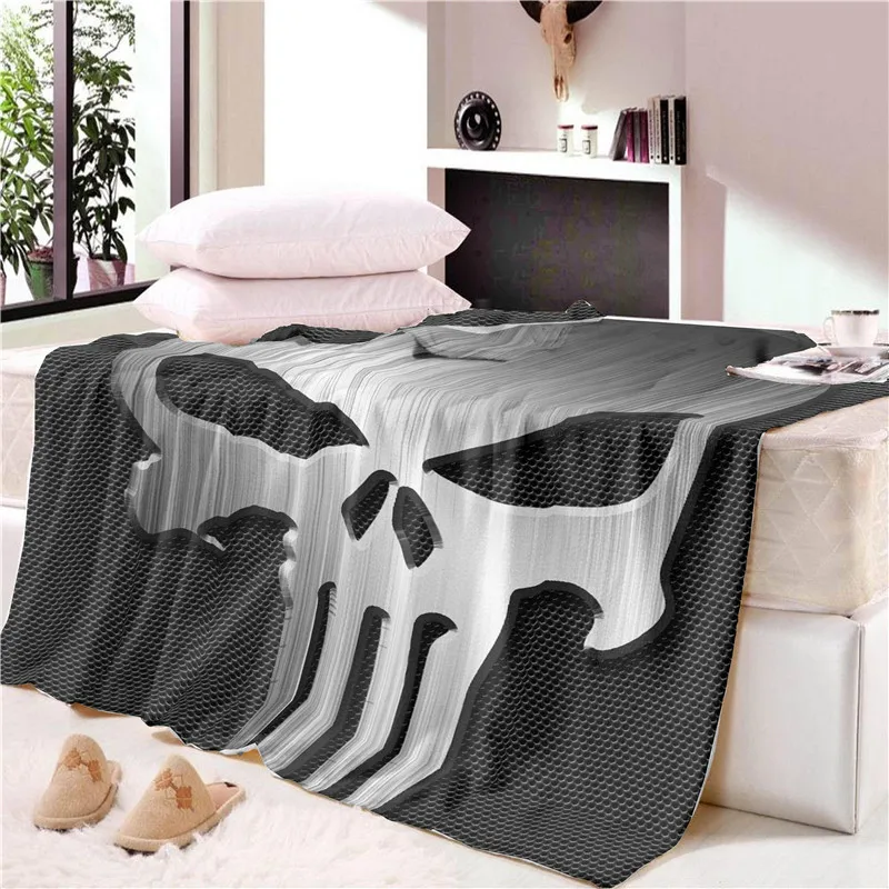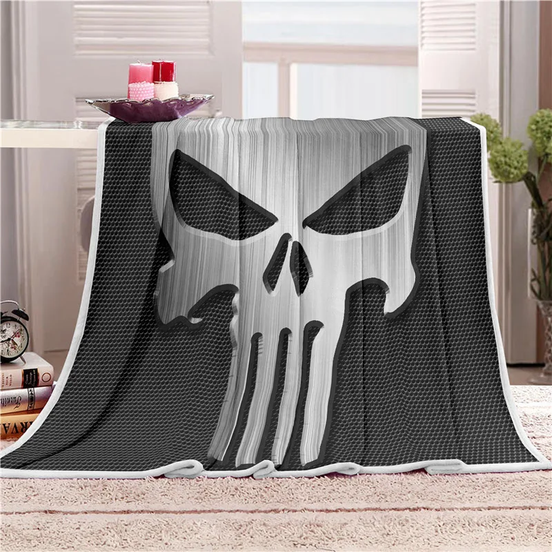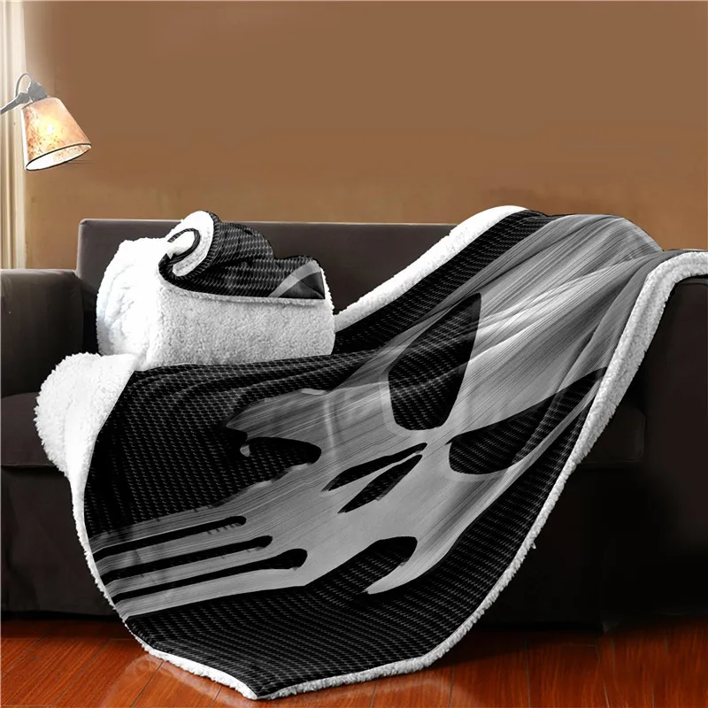 Черное бархатное плюшевое одеяло с мультяшным черепом, простыня для ланча, удобная мягкая накидка с принтом, для путешествий, без запаха, CB77