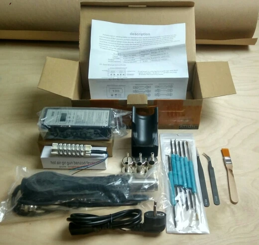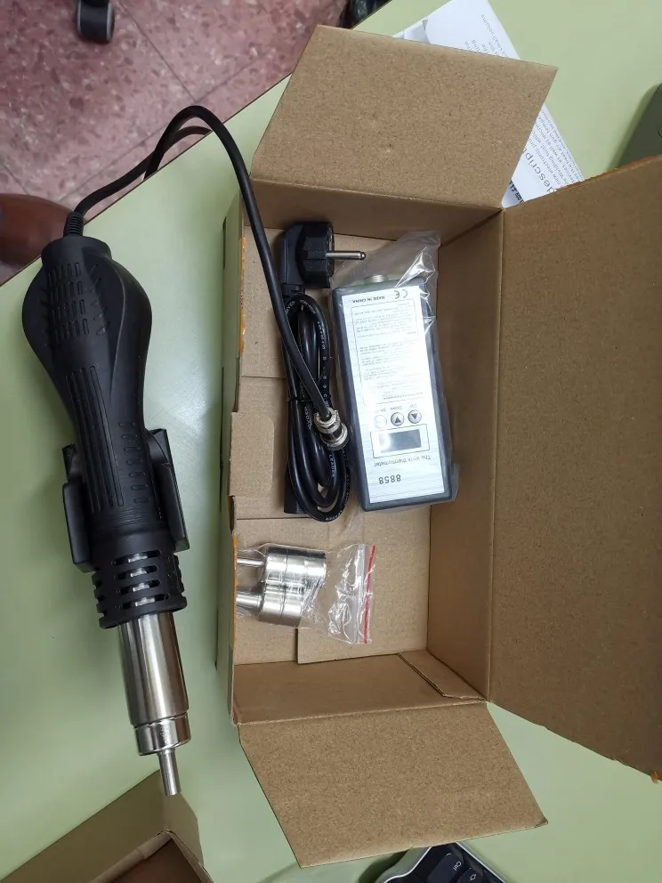 Продавец отправил посылку в тот же день. Получил её очень быстро, даже не ожидал, через 6 дней в Одессе к дверям привёз курьер от службы доставки Meest Express. Паяльная станция 8858 соотвествует описанию, заказывал комплектацию SET A, проверил всё в наличии комплектности и работает отлично, все регулировки происходять корректно. В комплекте 6 шт. насадок, но реально буду пользоваться только тремя самыми большими, последние три тонкие насадки не знаю вообще для чего они, и насколько они смогут прокачивать горячий воздух через себя. Всем рекомендую продавца, идет на общение, быстро отправляет посылки ему за это большой респект!!!