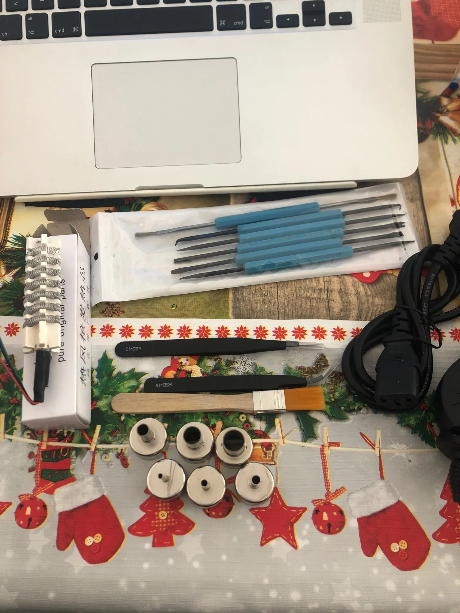 Посылка была доставлена 4 дня с момента покупки, потрясающая скорость! Он прибыл идеально без ударов или повреждений, содержание все идеально, сопротивление замены не повреждено, сумка для инструментов повреждена на базе из-за движущихся инструментов во время транспортировки, но все это идеально! Операция правильная, очень тихая, когда вы вставляете пистолет в режим выключения вентилятор все еще включен, чтобы избежать повреждения сопротивления и когда он выключится, важно не отключать, пока он не остановится. Очень доволен продуктом, это рождественский подарок, поэтому я попробовал его и обернул его, чтобы его выдать, я надеюсь, что он прослужит долго, я настоятельно рекомендую!