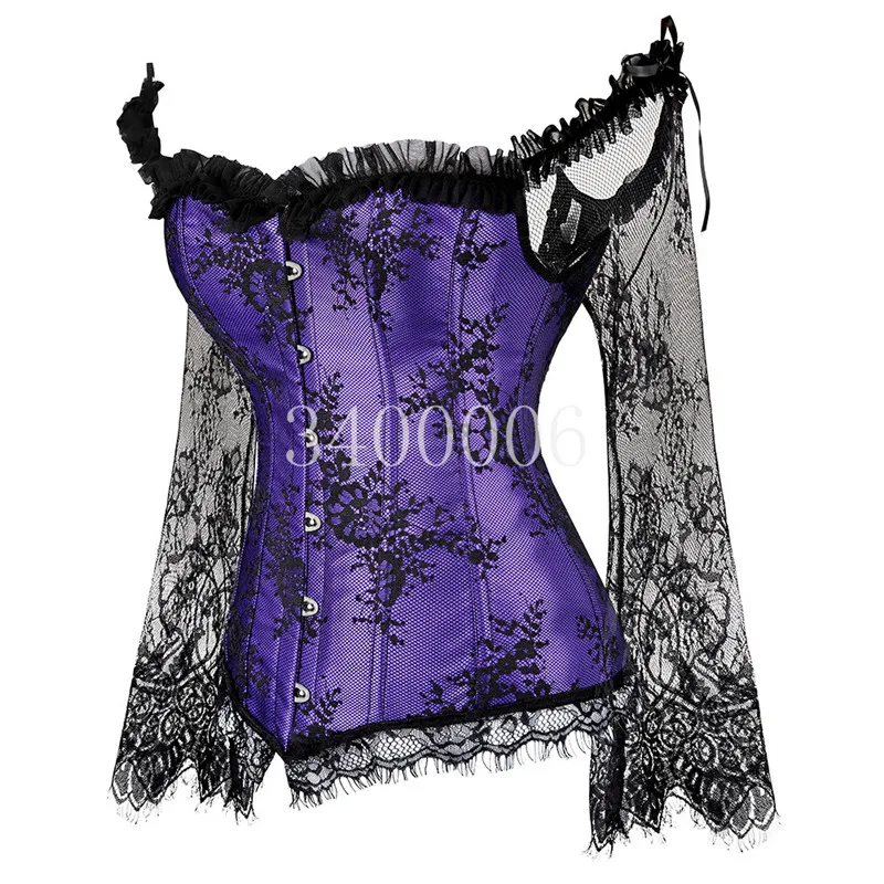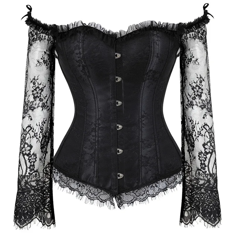 Корсет Топы для женщин с рукавами винтажный Стиль Викторианский Ретро Бурлеск кружевной корсет и бюстье жилет модный белый