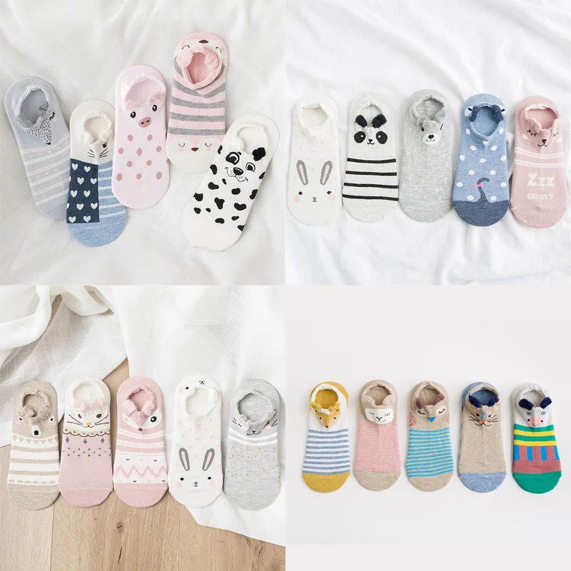 Носки женские весенне-летние хлопковые с 3d-ушками, женские носки-тапки, 10 шт. = 5 пар