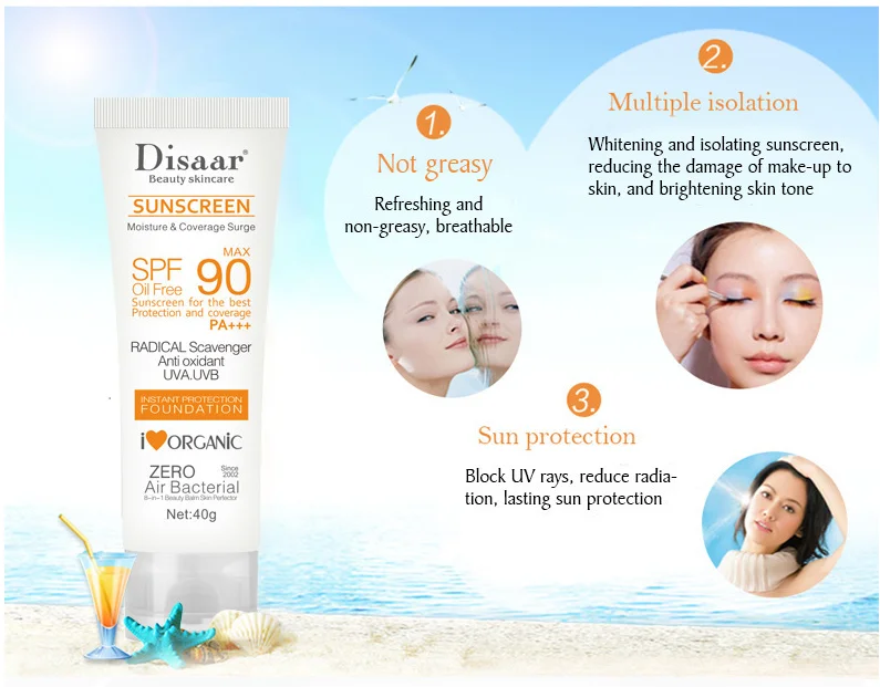 Солнцезащитный крем для лица, косметический уход за кожей, SPF 90, безмасляный окислитель, антиоксидант, Уфауфв, 40 г, отбеливающий дневной крем от солнца