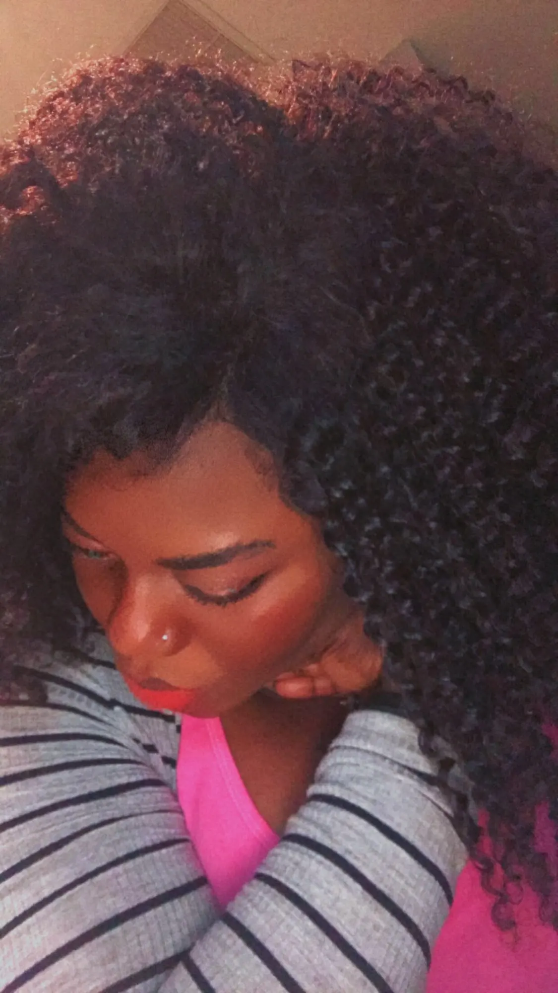 Волосы действительно красивые. Идеально подходит для натуральных волос 4c. Я заказал u часть, так что я был в состоянии поставить меня. Наполовину вверх и вниз. Немного пахнет, ничего плохого. И немного линяет, что ожидалось с вьющимися волосами. Я мою его с мягким шампунем и кондиционером. Оставьте или Наденьте гель. См. Результат на фото.