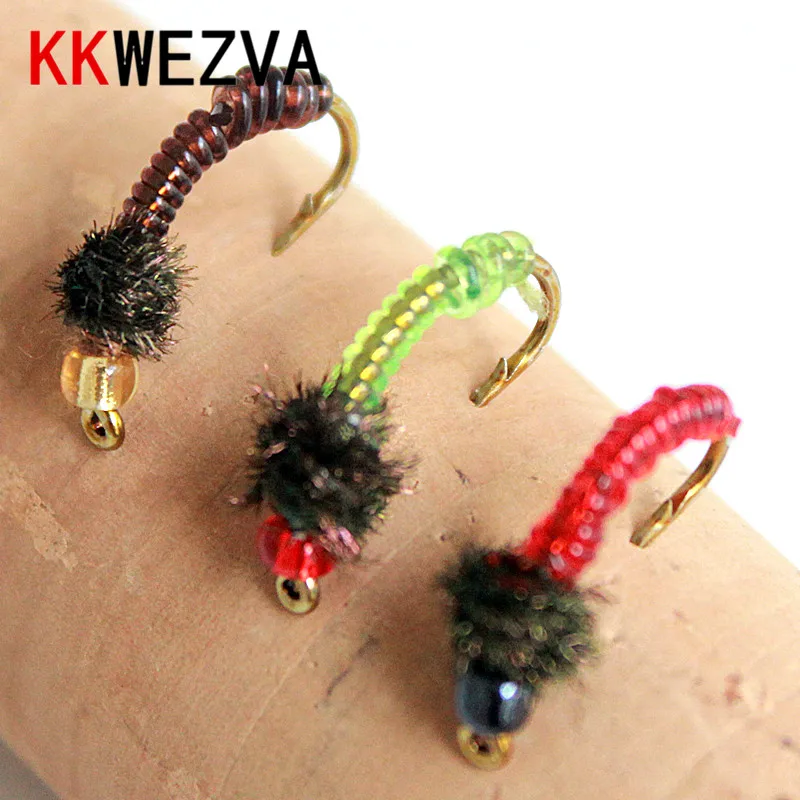 KKWEZVA 24 шт. рекламная витражная головка из Бисера Нимфа Скад Мидж нахлыст рыболовные Мушки для нахлыстом форели рыболовные привлекает насекомых приманки