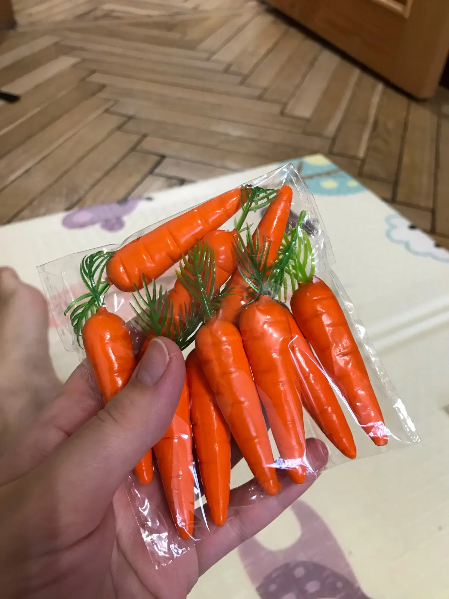 Хорошие морковки, заказываю второй раз. Сделали себе огород из EVA, теперь туда сажаем морковки, играем с ребенком 2 лет.